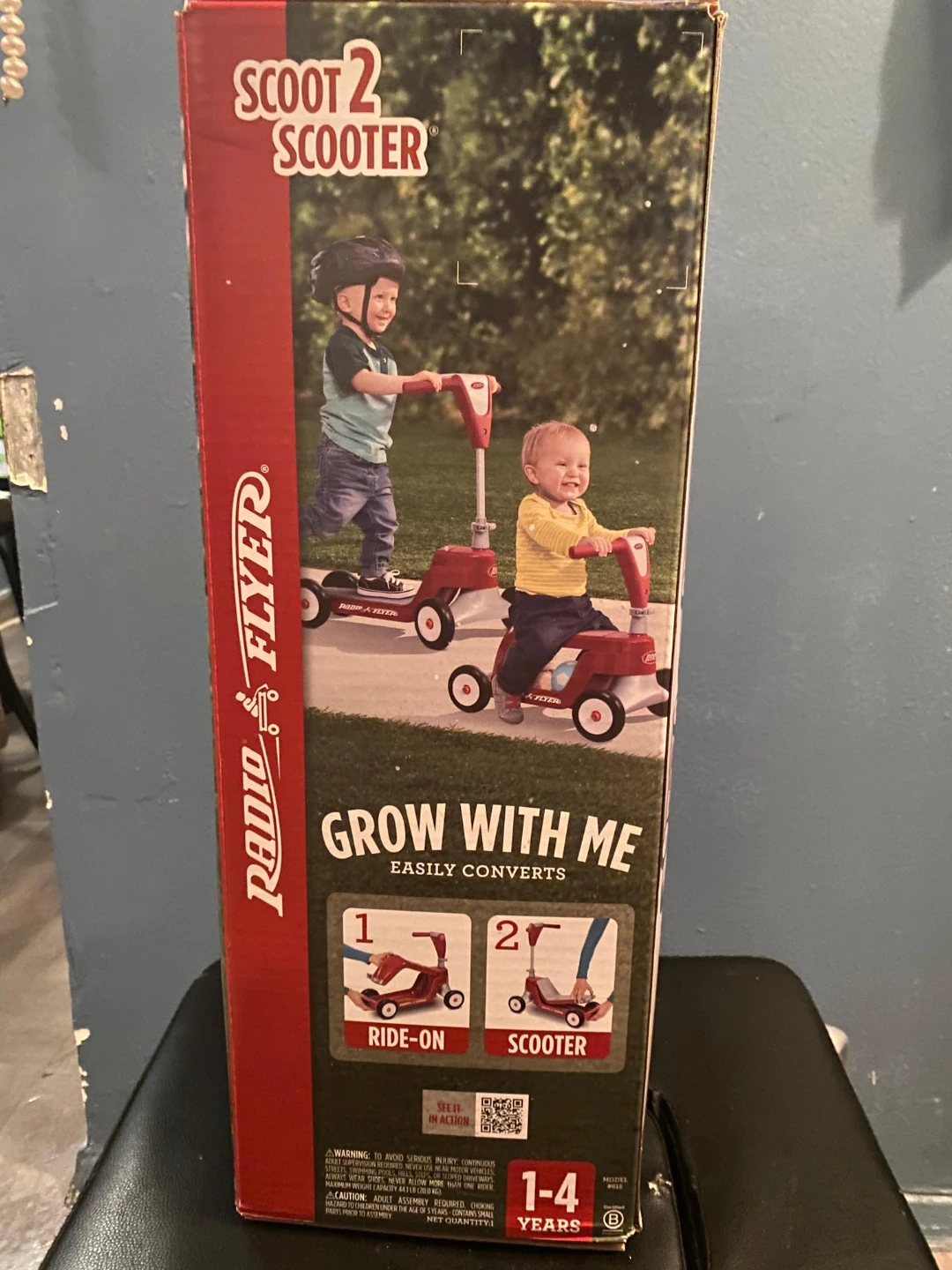 Radio Flyer Scoot 2 Scooter with "Grow With Me" feature. It easily converts from a ride-on toy to a scooter. Recommended for ages 1-4 years.