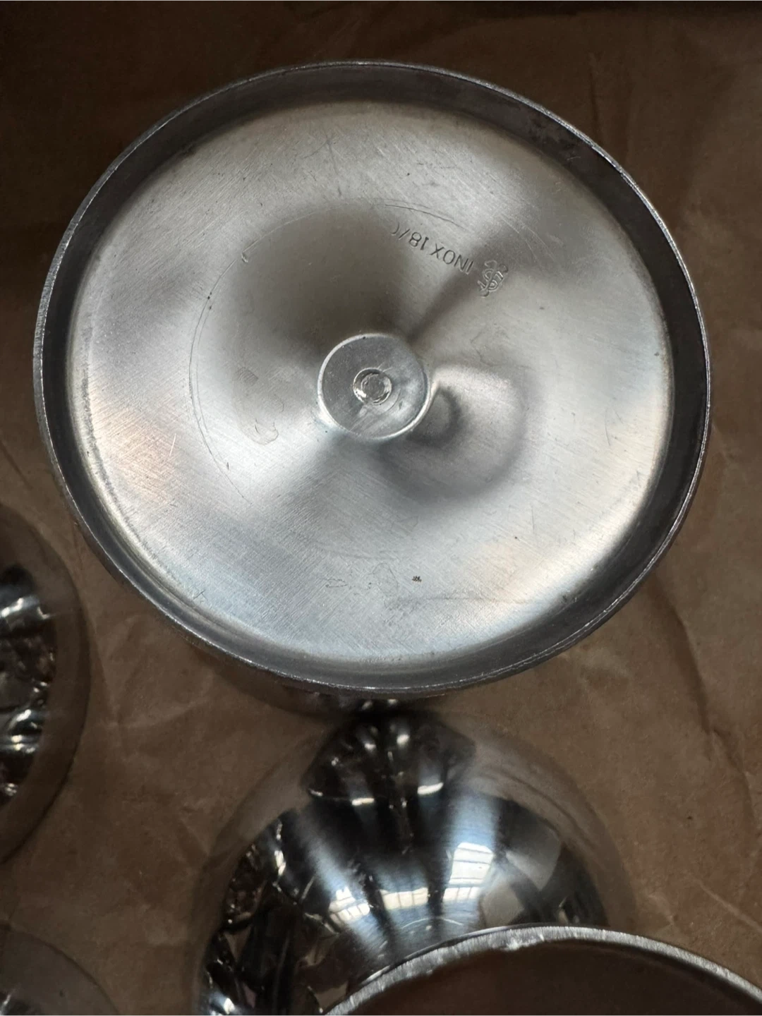 INOX 18/8 mid century style vintage coupe-style glasses made in Switzerland from stainless steel. These are unique and great for serving cocktails or frozen dessert.