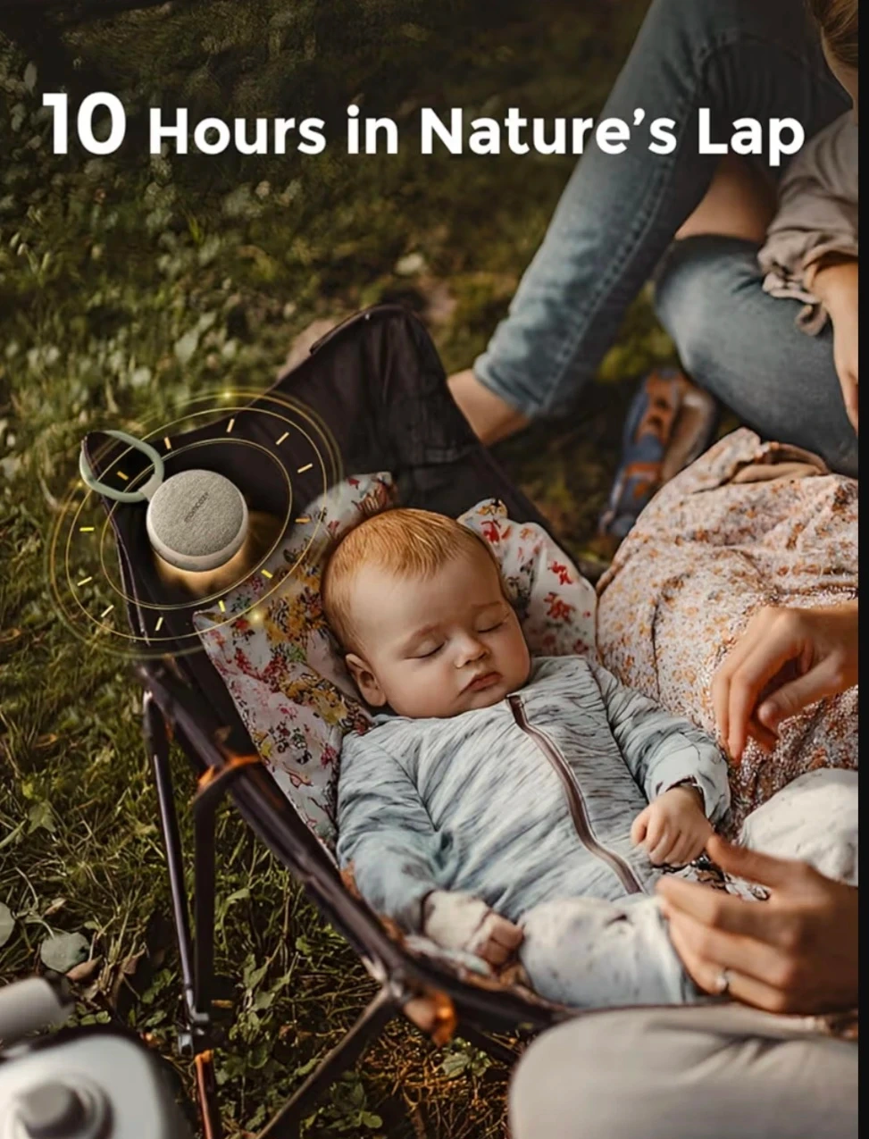 This portable sound machine and night light offers 20 soothing sounds. It features audio control, light control, and an auto-off timer with child lock. It's wireless speaker and charging design make it convenient for travel or home use.