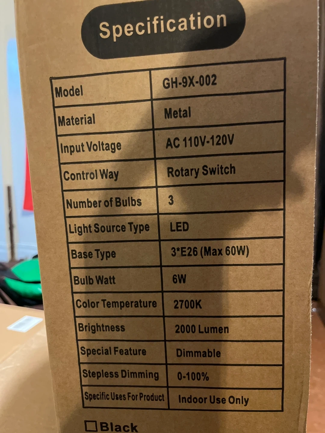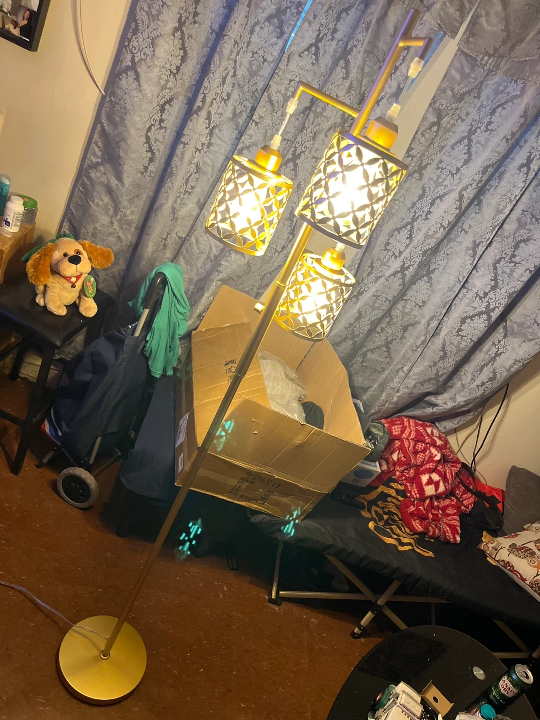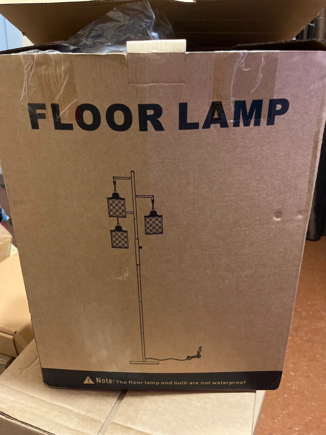 Selling a floor lamp with three lights! The model number is GH-9X-002. It's made of metal and uses LED light sources. It's dimmable and for indoor use only. The lamp comes with its original box. While another one is assembled. For viewing of how this masterpiece. Looks after finish. Selling both dep the price listed below. They are totally New. !!! Come take it before it goes