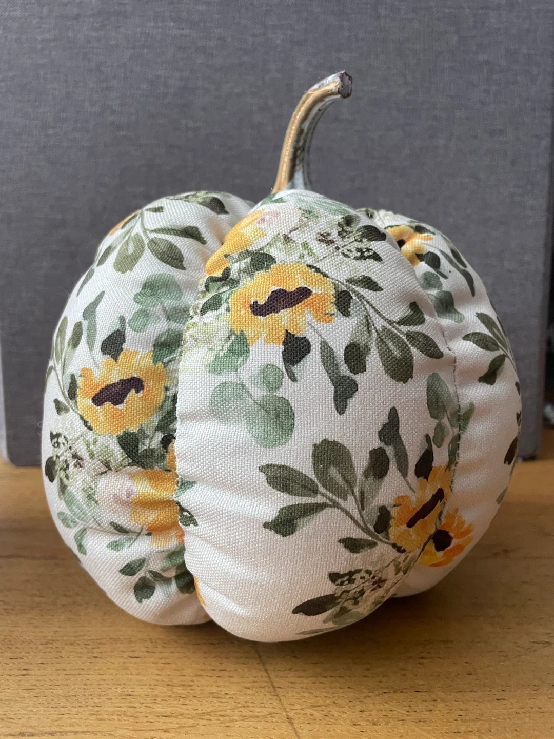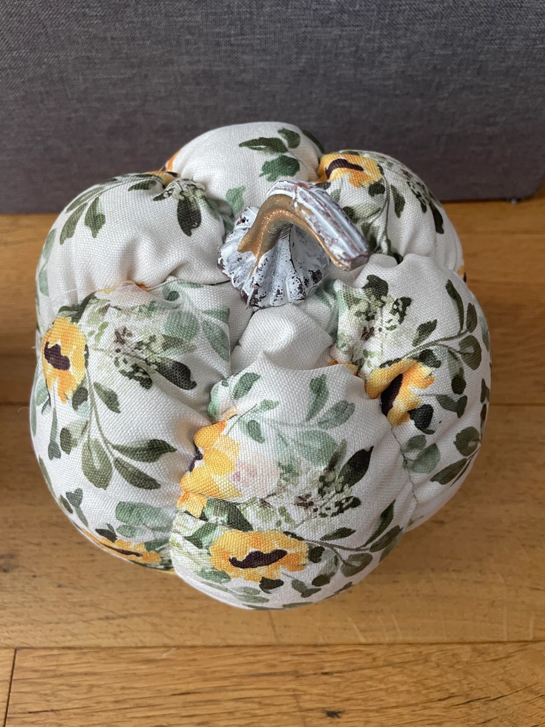 This is a cute floral fabric pumpkin! It would be a great fall decoration