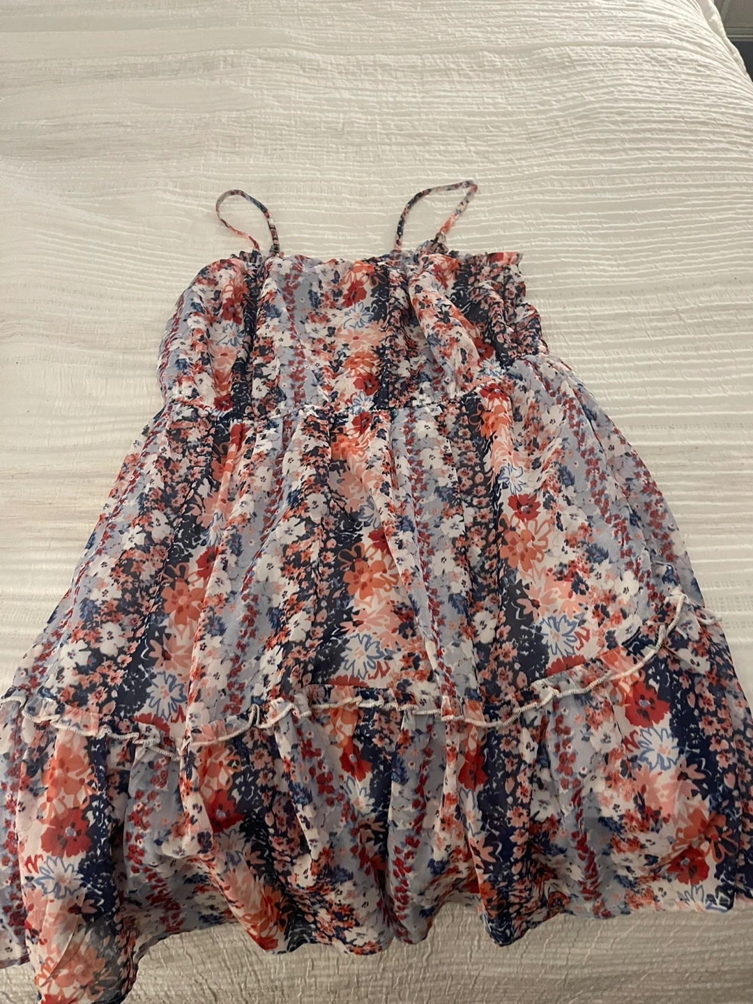 Buy & SellFloral Print DressFloral Print Dress$15Selling a super cute floral print dress! It has a tiered ruffle detail and adjustable straps. Perfect for spring or summer!ConditionLike newSizeLarge0 chats·0 favorites·16 viewsSELLERJenTwo Bridges100 reviewsWHERE TO MEETTwo Bridges
