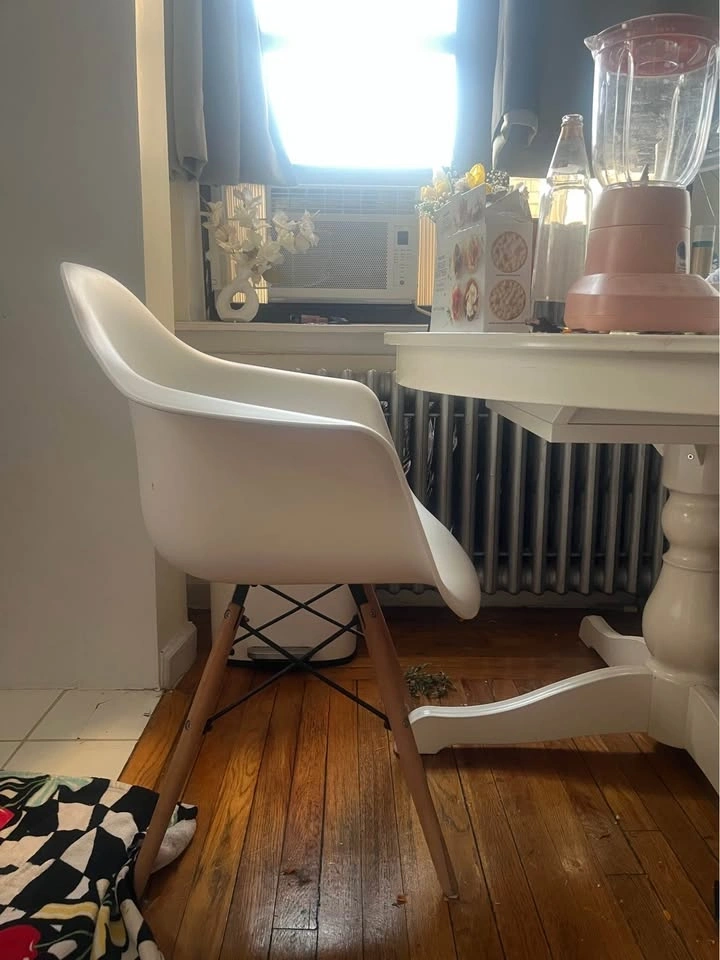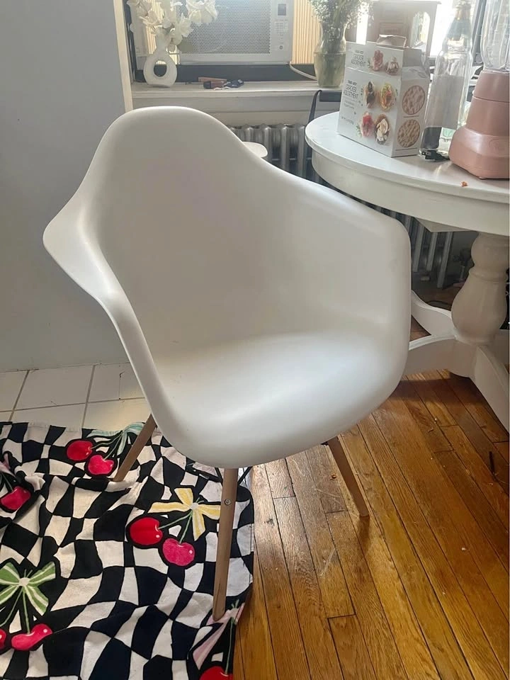 Buy & SellModern White Chair with Wooden LegsModern White Chair with Wooden Legs$18Sleek white chair with a cool modern design. Features a white plastic shell and wooden legs with a black metal cross base.WHERE TO MEETCheck LocationView MapSELLERJamieManhattan Valley181 review0 chats·1 favorites·17 viewsSEND CHAT TO SELLERHi Jamie! I’m interested in your listing.Hi Jamie! I’m interested in your listing.Get the Karrot app to chatSign In to chat