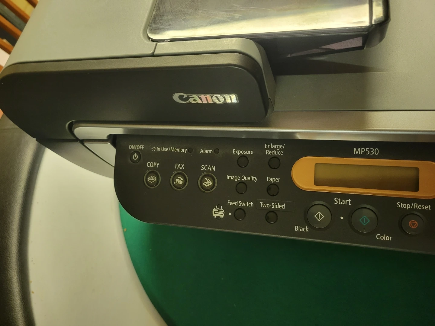 Selling a Canon PIXMA MP530 all-in-one printer, scanner, and copier. It's a versatile machine for home or office use. Comes with a scanner bed and a document feeder. This unit handles copying, faxing, and scanning tasks.