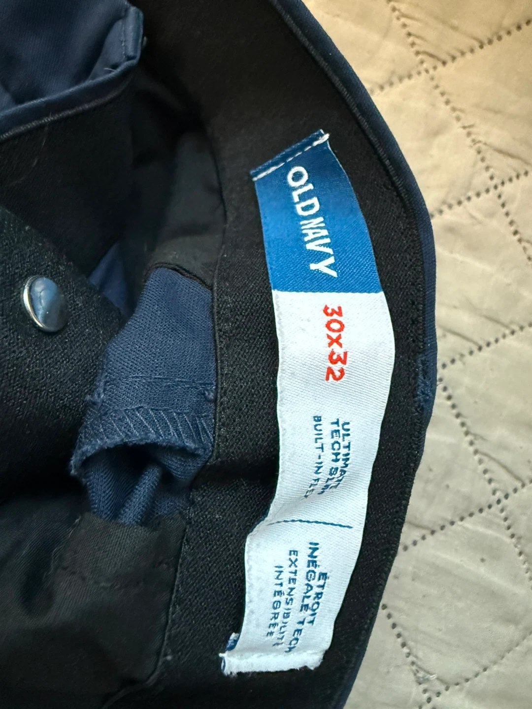 Old Navy Ultimate Tech Slim Fit pants. These navy trousers are size 30x32. They feature built-in extensibility for comfort.