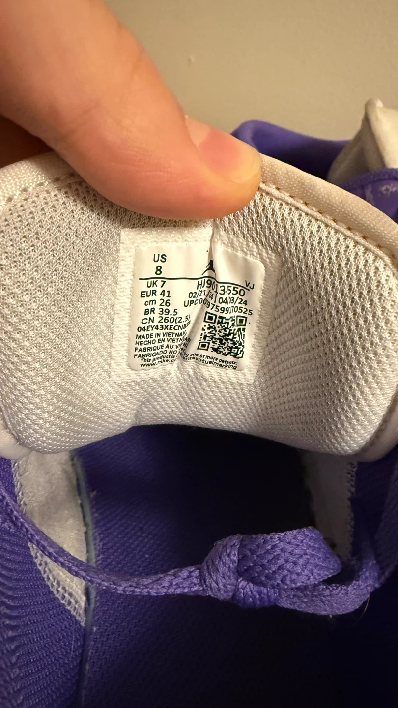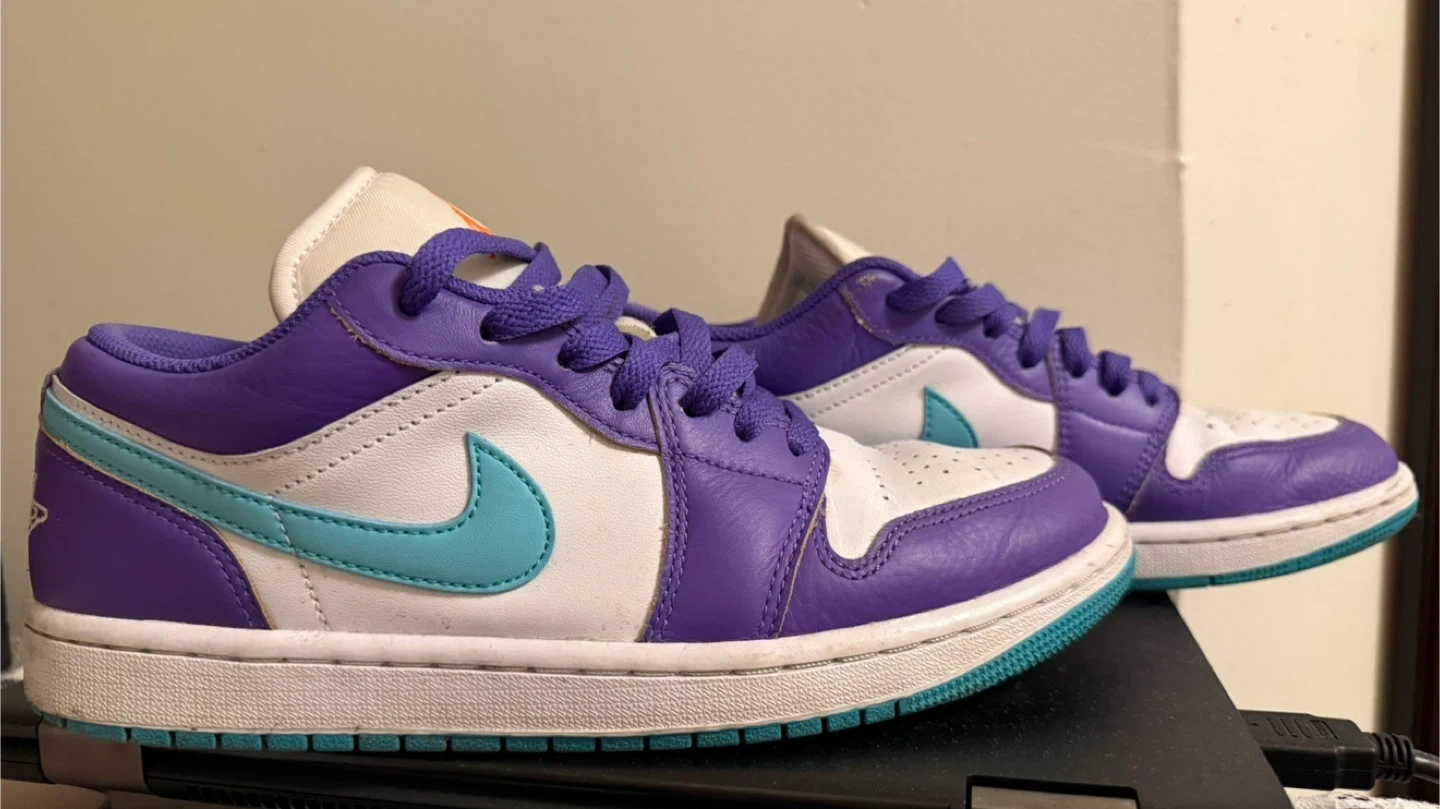 Selling a pair of Nike Air Jordan 1 Low sneakers in a vibrant purple and aqua colorway! These are a US size 8 in men’s and worn a few times, the sole is in perfect condition. This is my lowest sorry