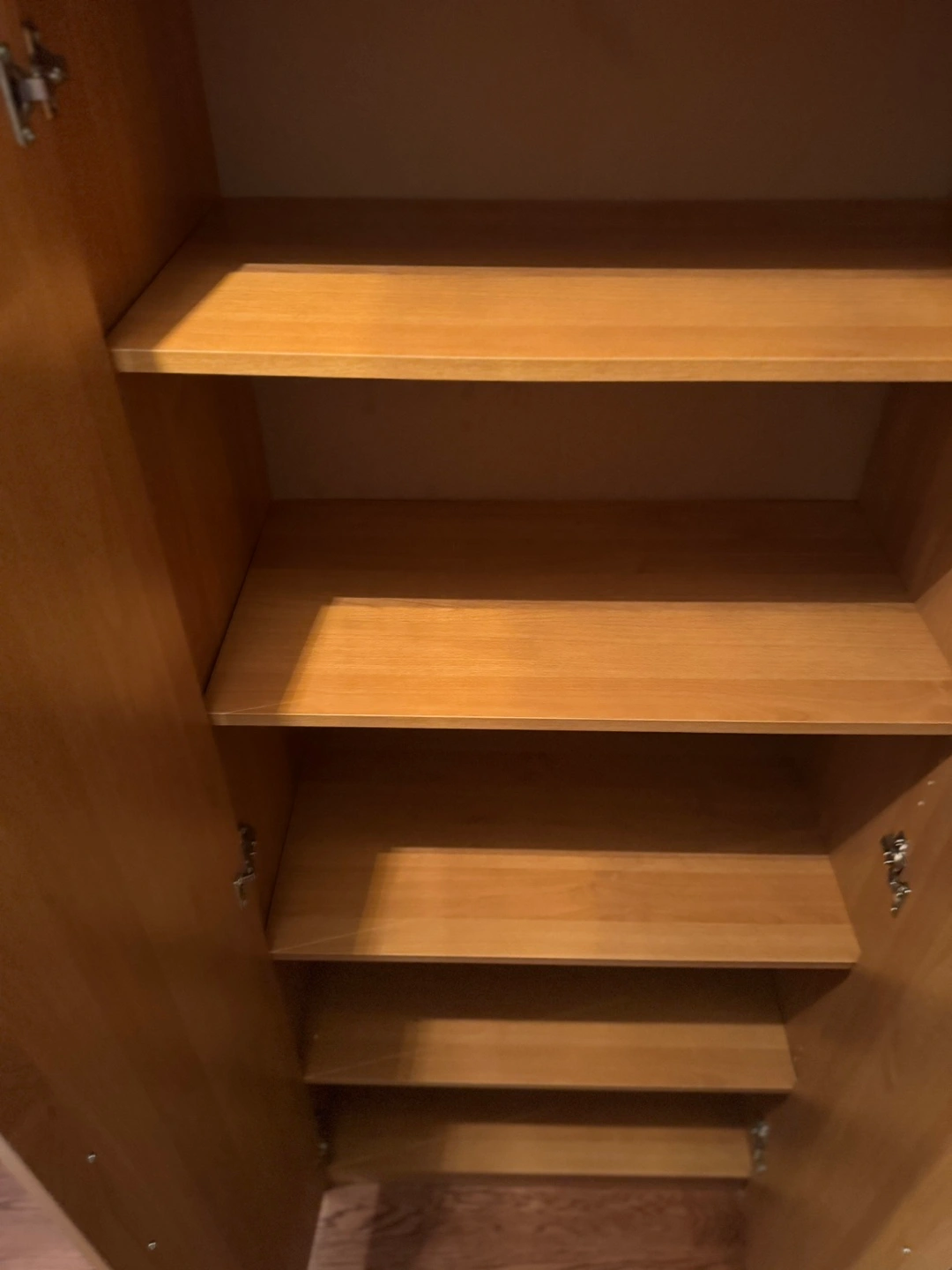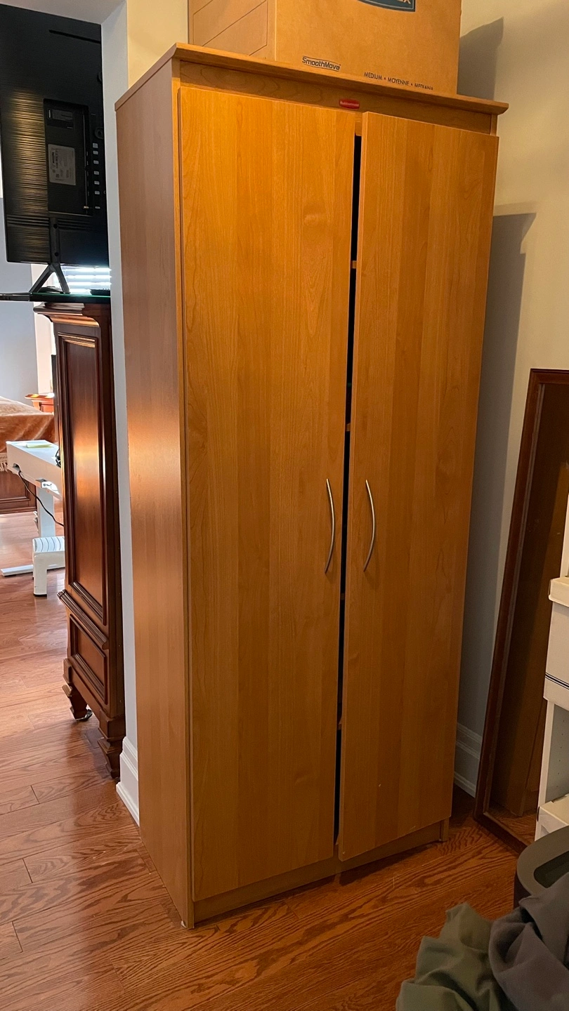 Tall cabinet with multiple shelves and two doors, previously used as a book shelf unit. In very good condition.