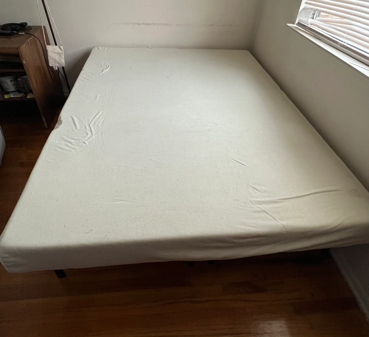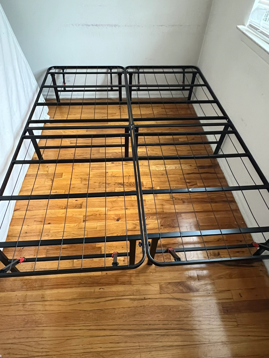Foldable queen metal bed frame holds good for queen mattress and giving away free queen mattress with bed frame