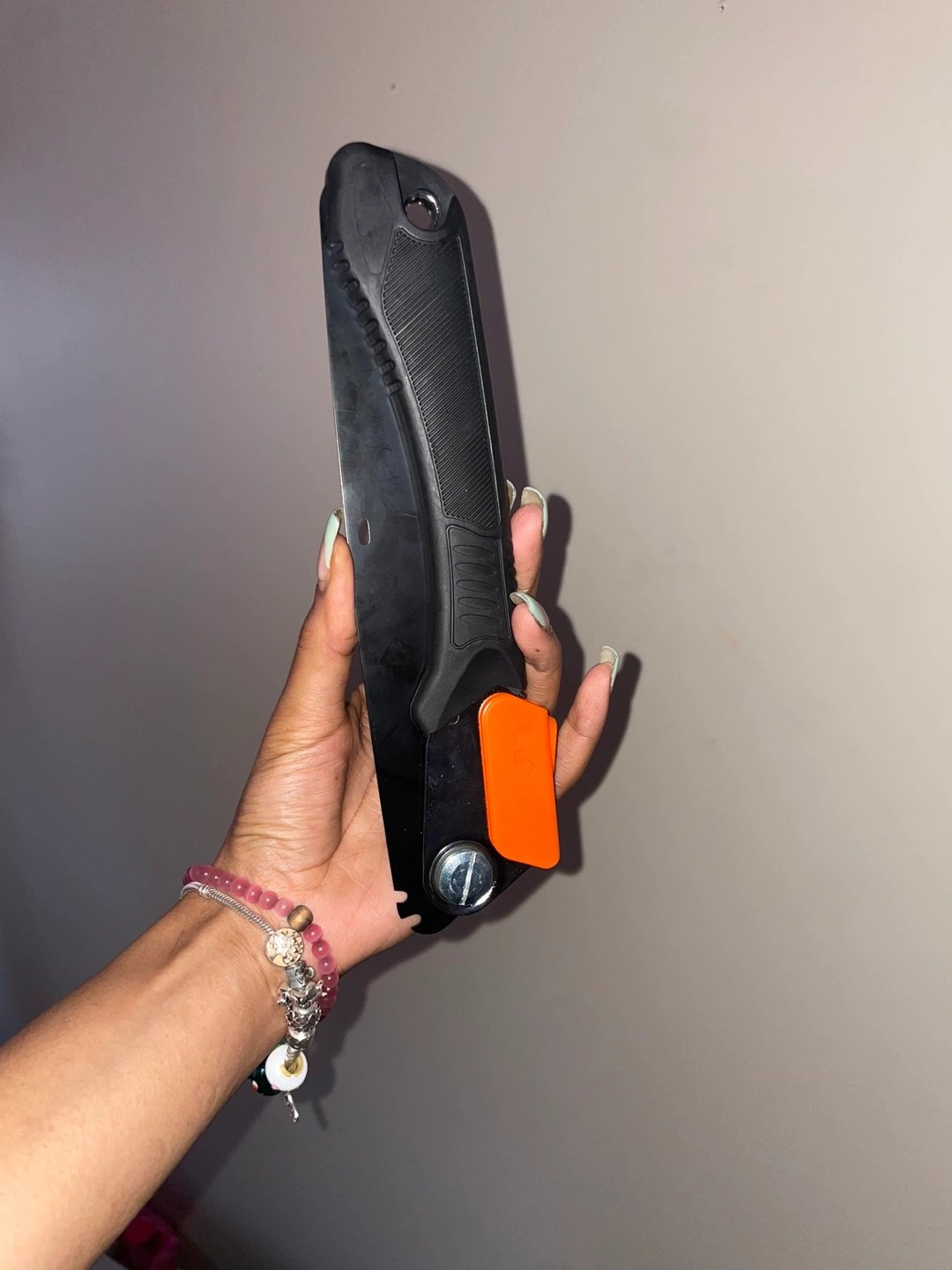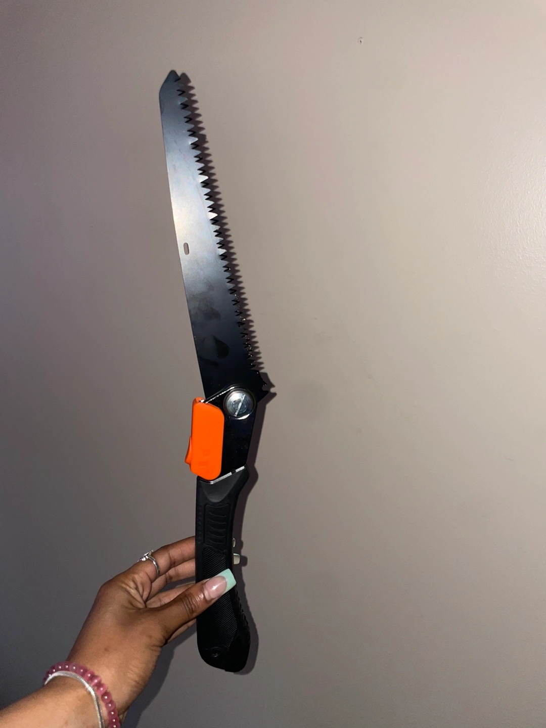 139Folding hand saw with black and orange handle. Comes in original packaging. Unused.