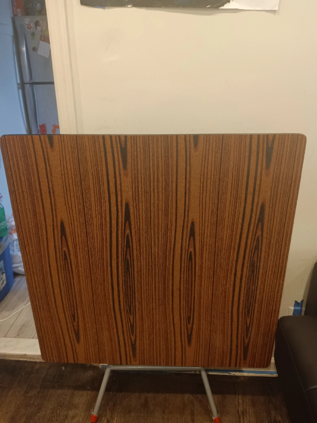10Selling a folding table with a wood grain finish! It's perfect for small spaces and easy to store when not in use. This table is sturdy and in good condition, ready to be used for dining, crafting, or as a temporary workspace
