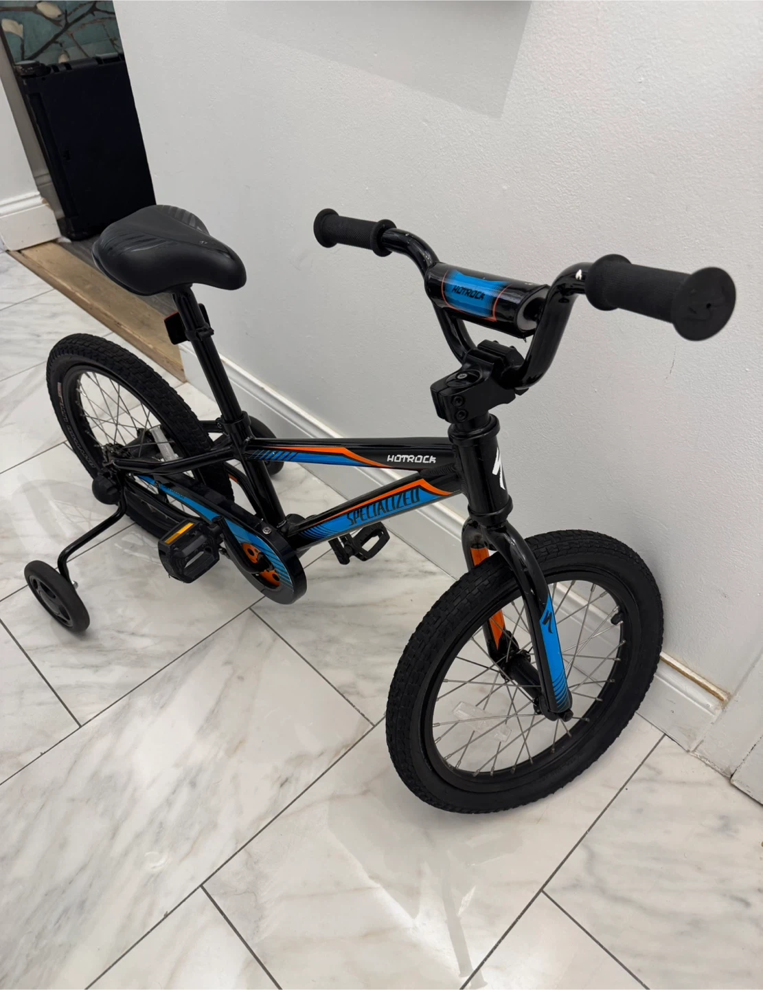 16-inch Specialized Hot Rock kids’ bike in excellent condition. Kept indoors since purchase — no rust or major wear. Seat, tires, chain, and pedals are all in great shape. Note: there is some chipped paint on the handles. Asking price: $100 Ready to ride!