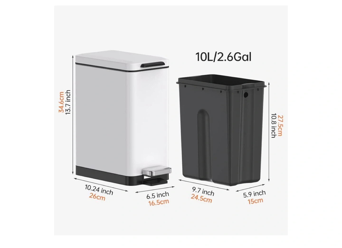 It features a soft-close lid and a removable inner bucket for easy cleaning.