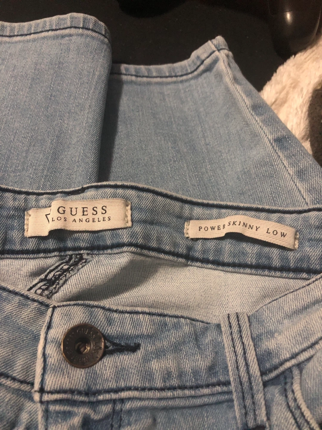 I'm selling a pair of Guess Los Angeles Power Skinny Low jeans. They are a light blue colour and would be a great addition to your wardrobe