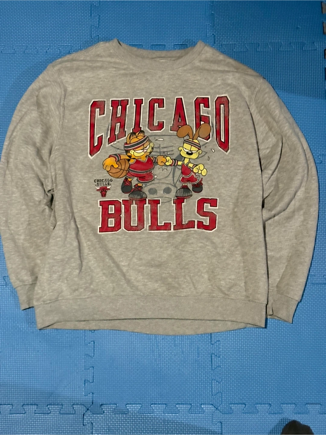 Selling a grey Chicago Bulls crewneck featuring Garfield and Odie! It's in great condition and perfect for any Bulls or Garfield fan