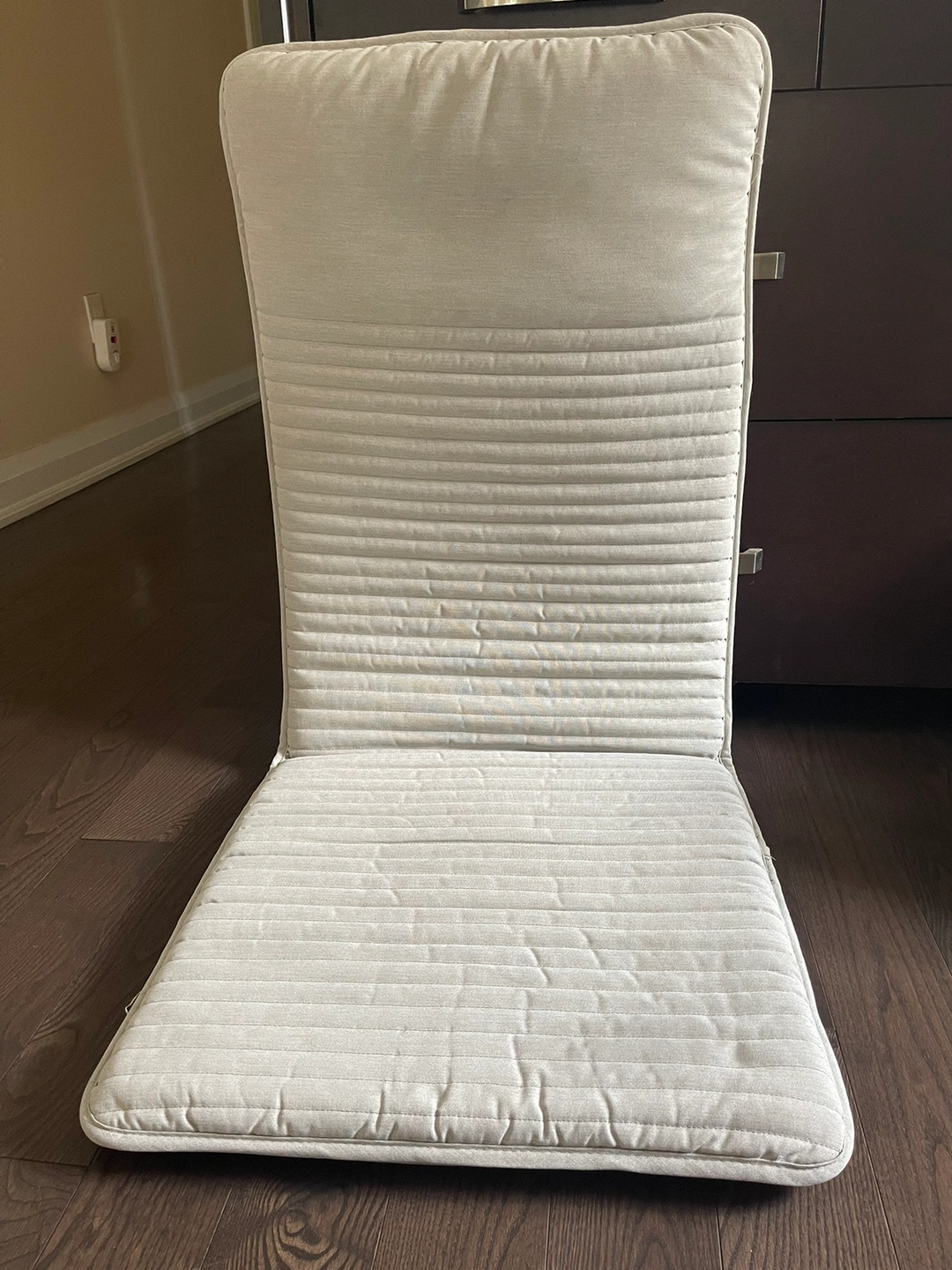Armchair cushion in light beige colour.its a used but in great condition.no rip,stain etc.pet and smoke free home.the fist picture is from website.rest are the real pictures.