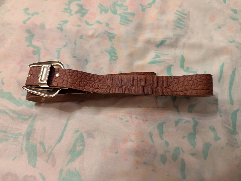 Size 11 x 7. Made in Canada. Includes brown leather belt.