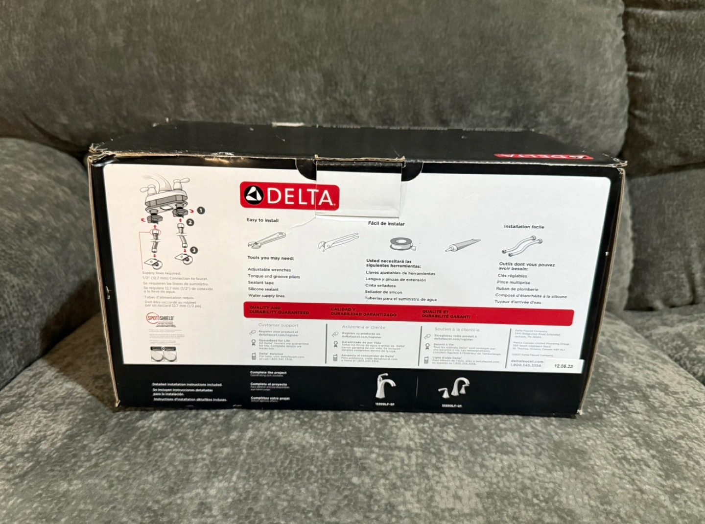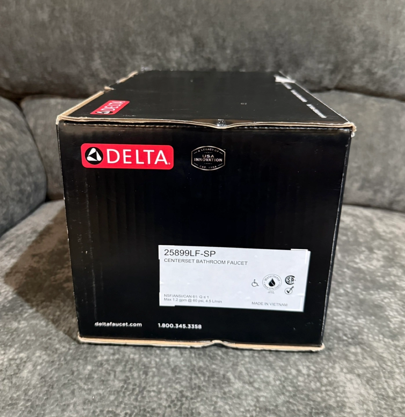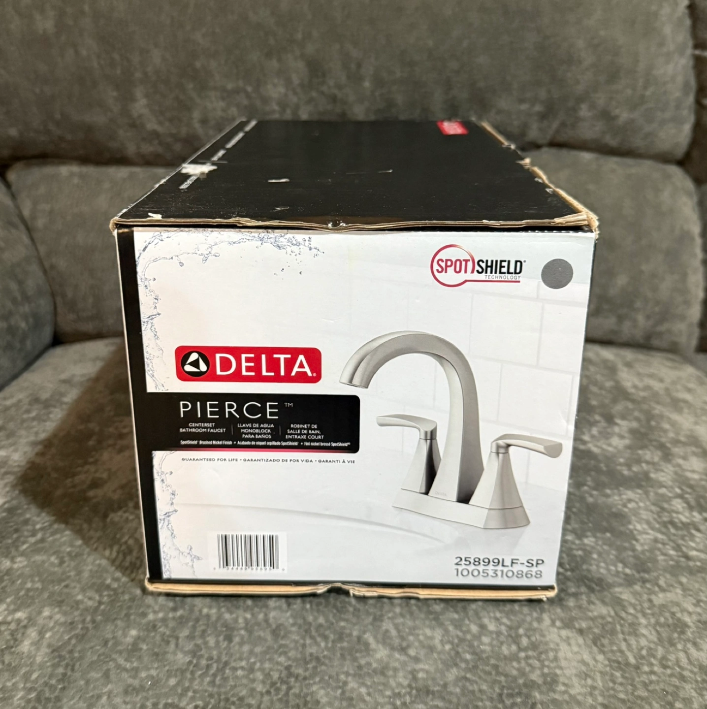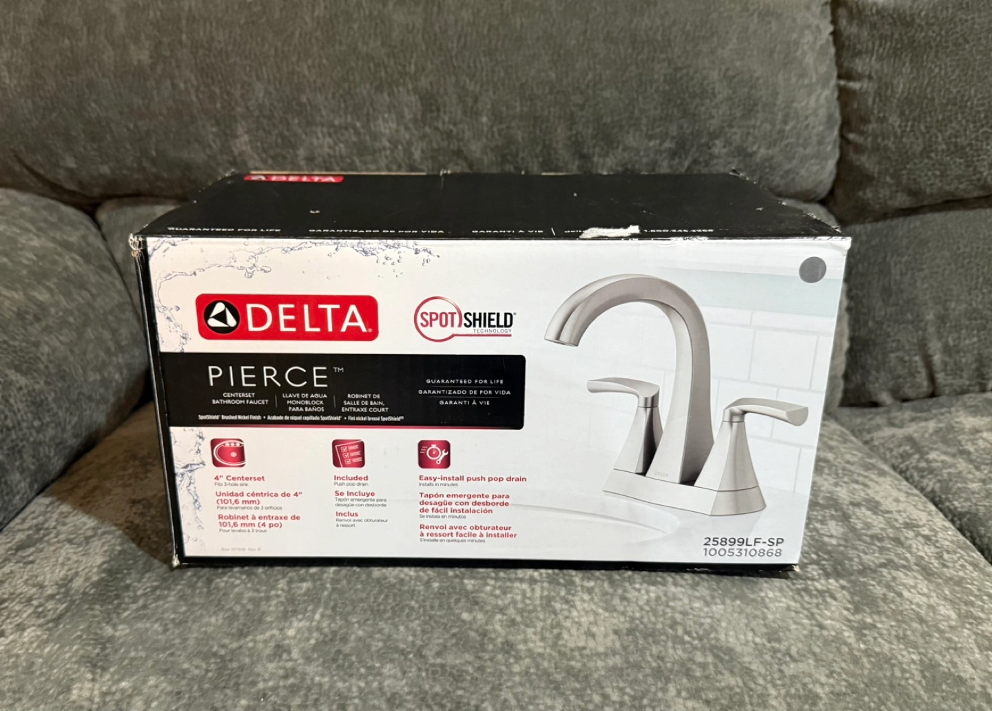 Delta faucet. Model 25899LF-SP. SpotShield technology. Easy push-pull drain assembly. Includes 4" centers. Chrome.