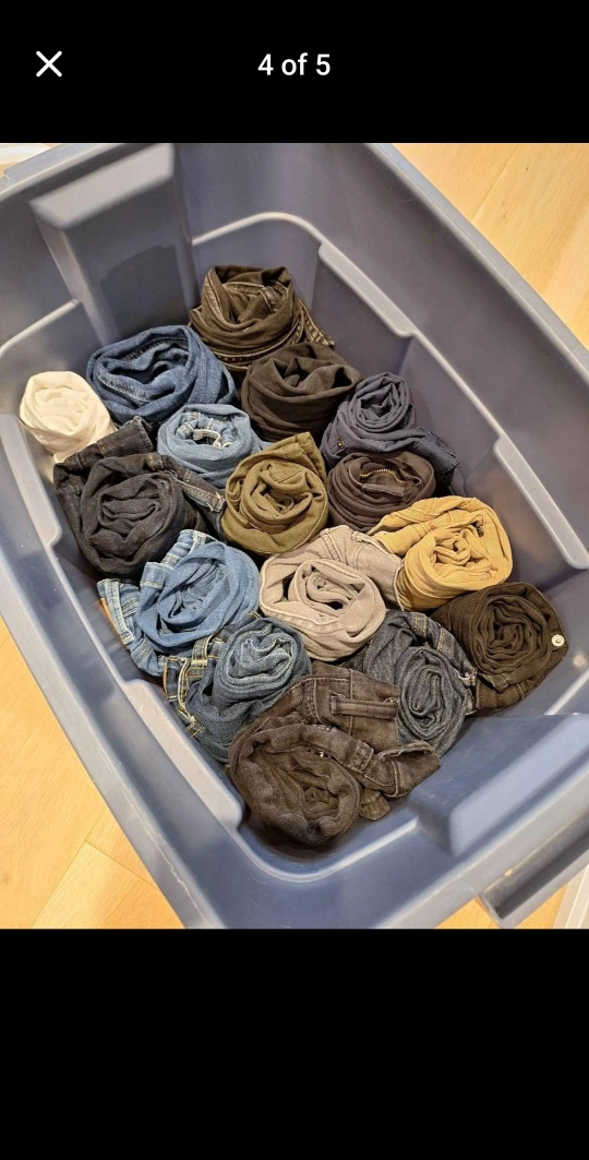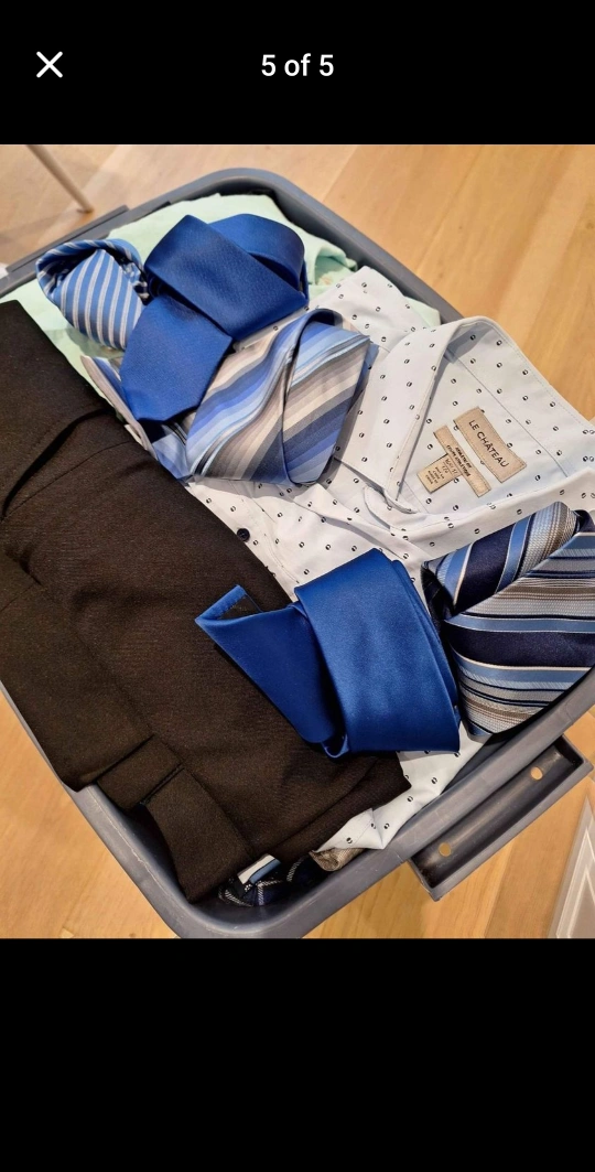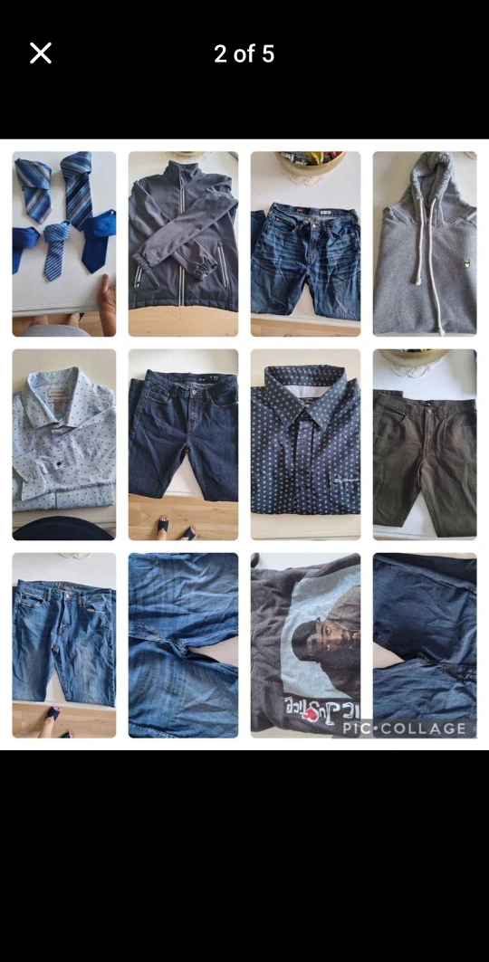 This lot contains a variety of men's clothing, including shirts, sweaters, jeans, and ties. All clothing is in good condition.bin full of men's clothing, over 30 pieces ranging from shorts, casual pants, jeans, dress pants, hoodies, pullover, dress shirts, ties, casual shirts. Sizes range from pants 30 - 33, tops med-large. All in great condition. Sellin the whole lot for $100, averages less than $4 per piece. Some brands are Parasuco, Calvin Klein, DKNY, George, A&E.