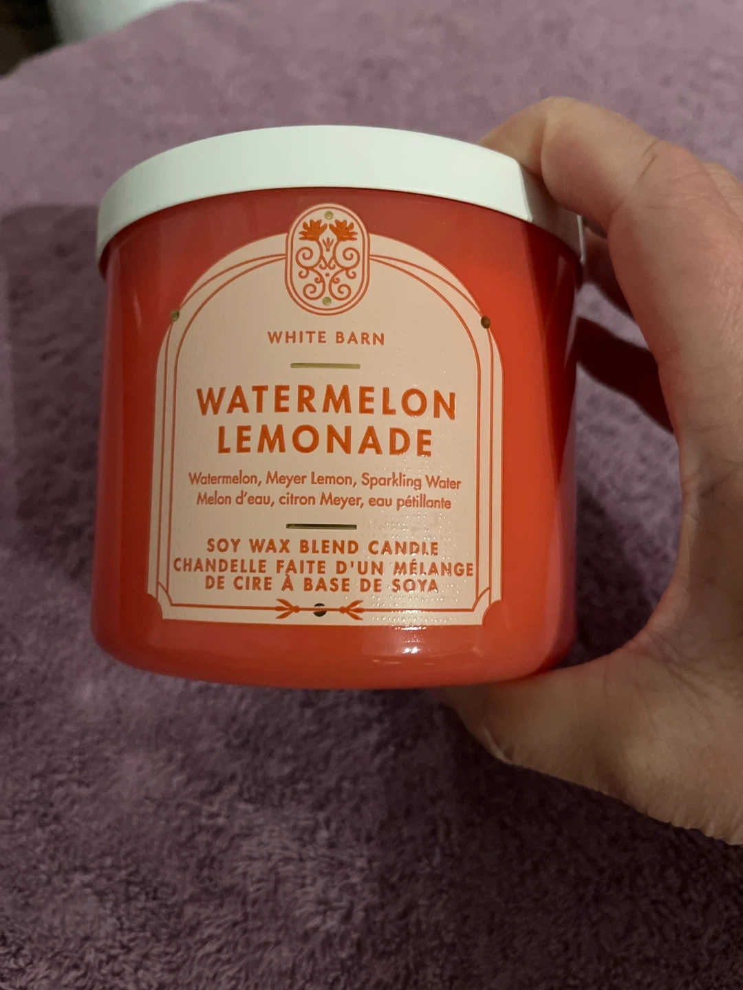 Selling a White Barn Watermelon Lemonade candle! It's a soy wax blend candle with a refreshing scent. The candle features watermelon, Meyer lemon, and sparkling water notes