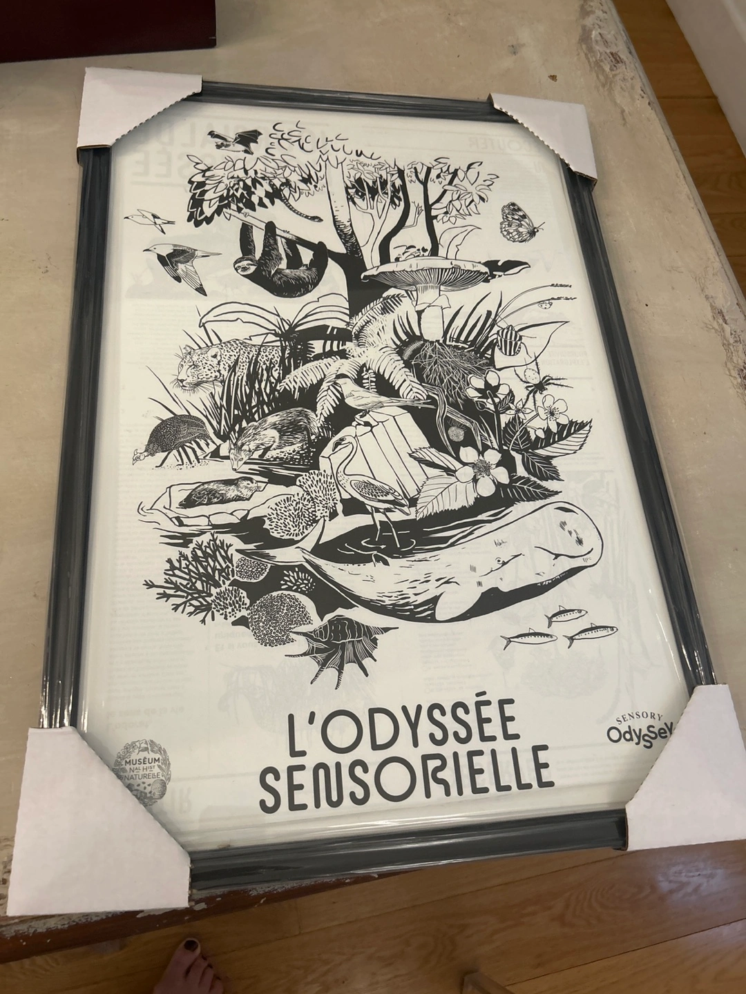 Brand newly professionally framed poster of a recent Paris Museum of Natural History “ Sensory Odyssey” exhibition. This kind of posters can be very valued overtime!