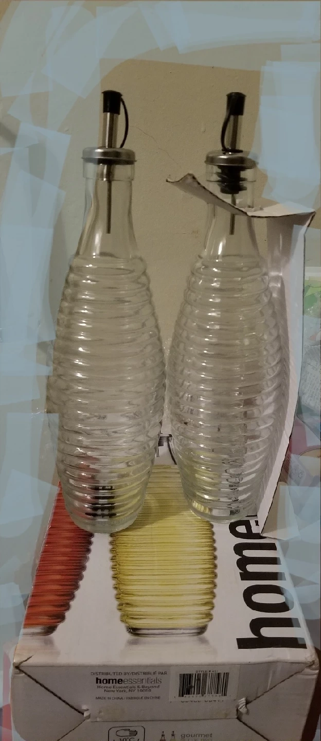 68Giving away for a set of two Home Essentials Gourmet oil and vinegar dispensers. They each hold 20 oz and come in their original box. One of ' em is used, defective another one is NEW. please refer to the 3rd & 4th picture.