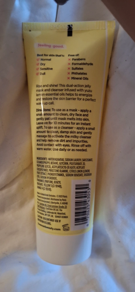 This Freeman Energize Jelly Mask is perfect for exhausted skin and mood! It contains essential oils and yuzu lemon to energize. It's dermatologist tested and can also be used as a cleanser. It's free of parabens, formaldehyde, sulfates, phthalates, and mineral oils.