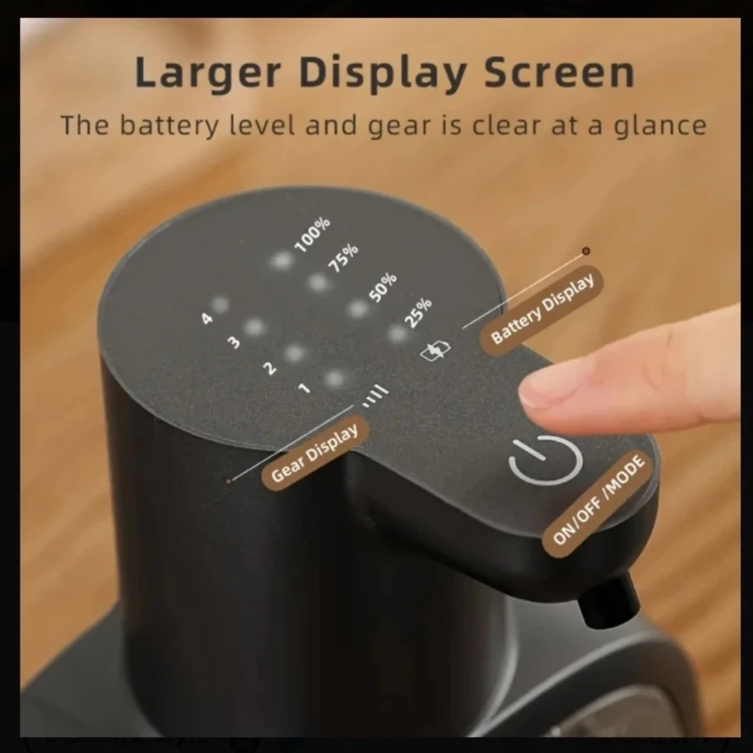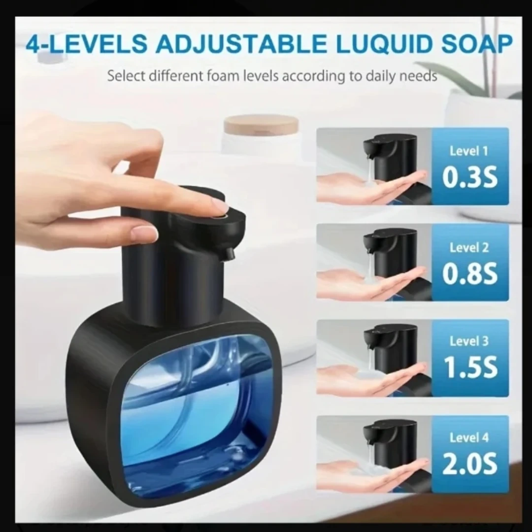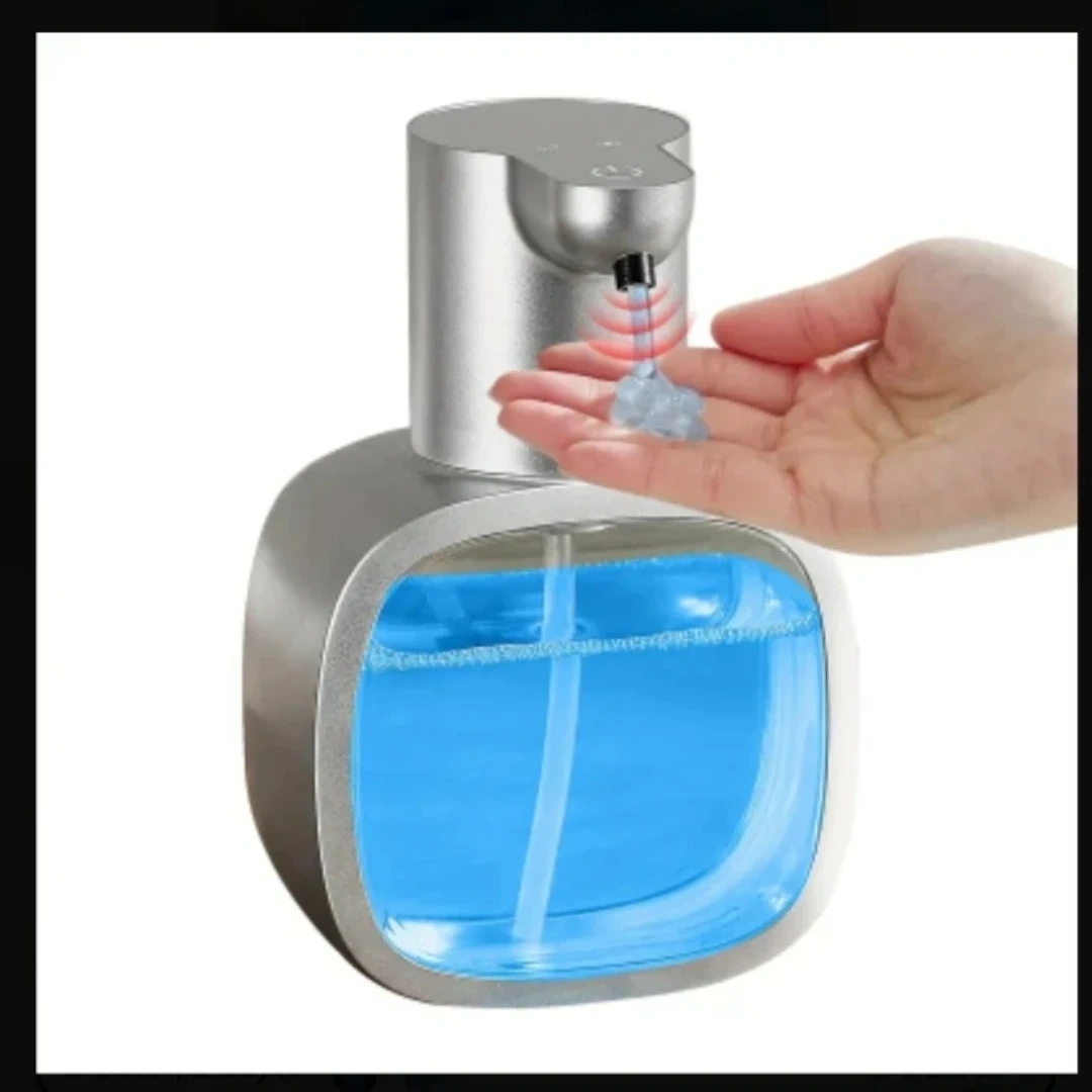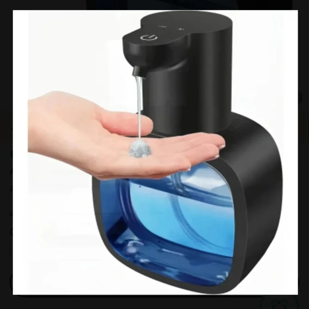 This automatic foam or liquid soap dispenser helps prevent cross-infection. It's rechargeable via Type-C and includes two backing stickers for installation. Dimensions are 18cm high, 11.5cm wide, and 6cm deep.