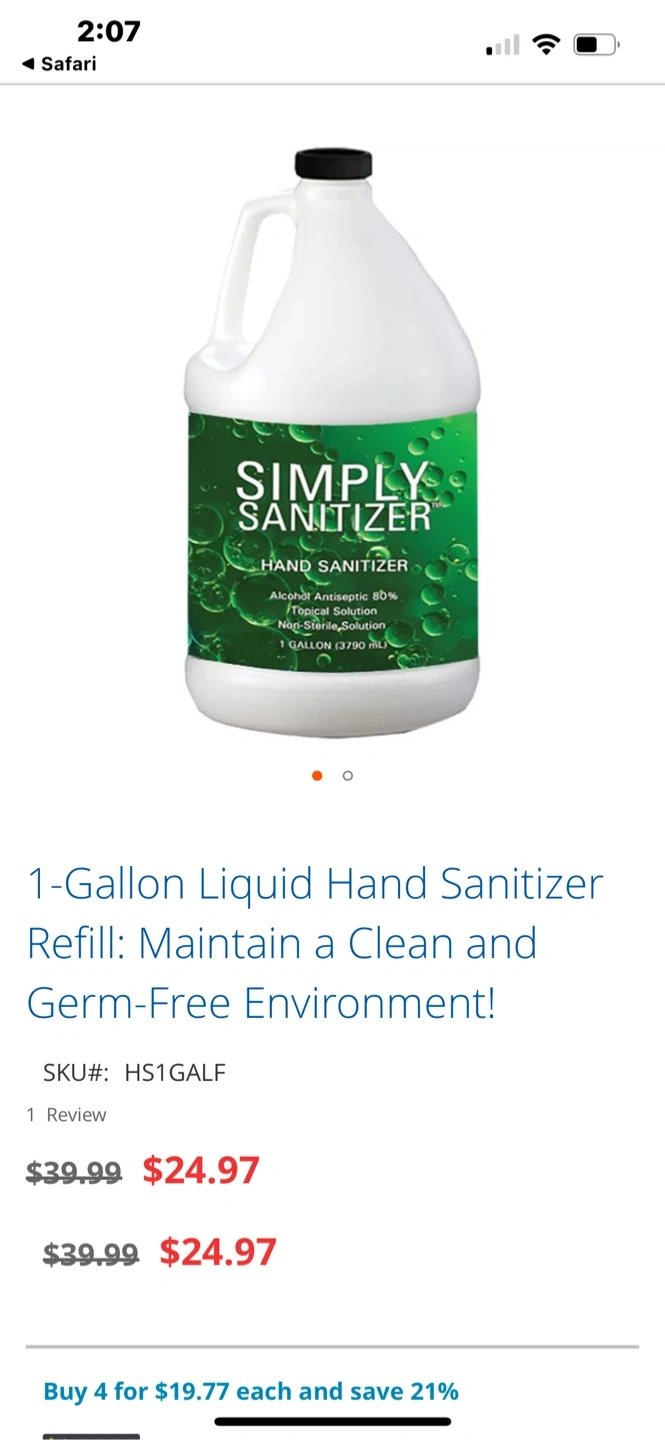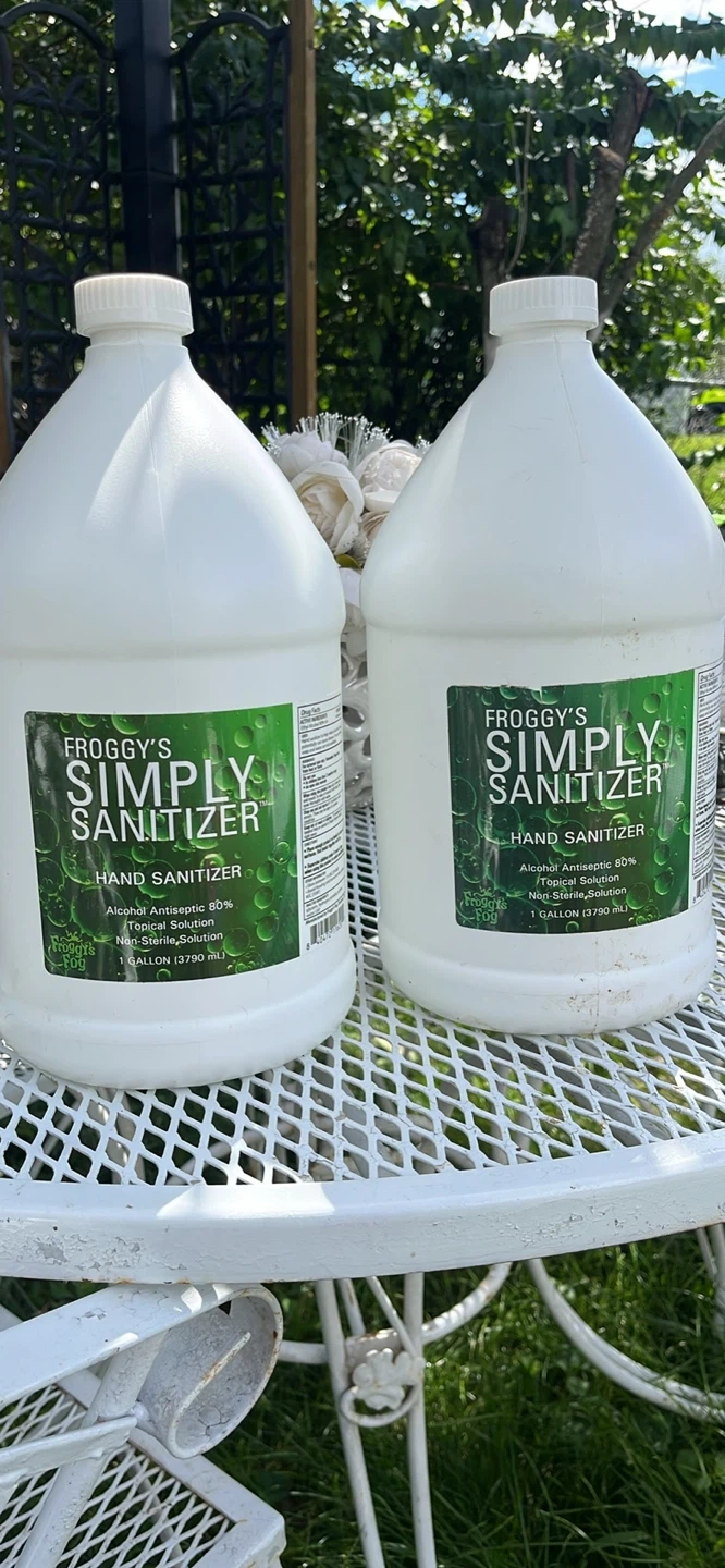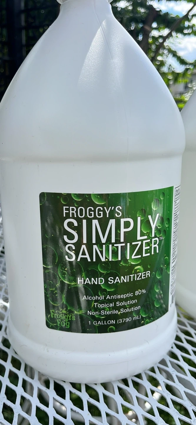 Selling a 1-gallon container of Froggy's Simply Sanitizer hand sanitizer. It's an alcohol antiseptic 80% topical solution that's non-sterile. Perfect for keeping your hands clean! $15 each one