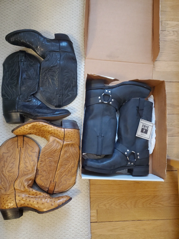 JUSTIN BOOTS each $100. FRYE CLASSIC MENS BOOT $175. never worn
