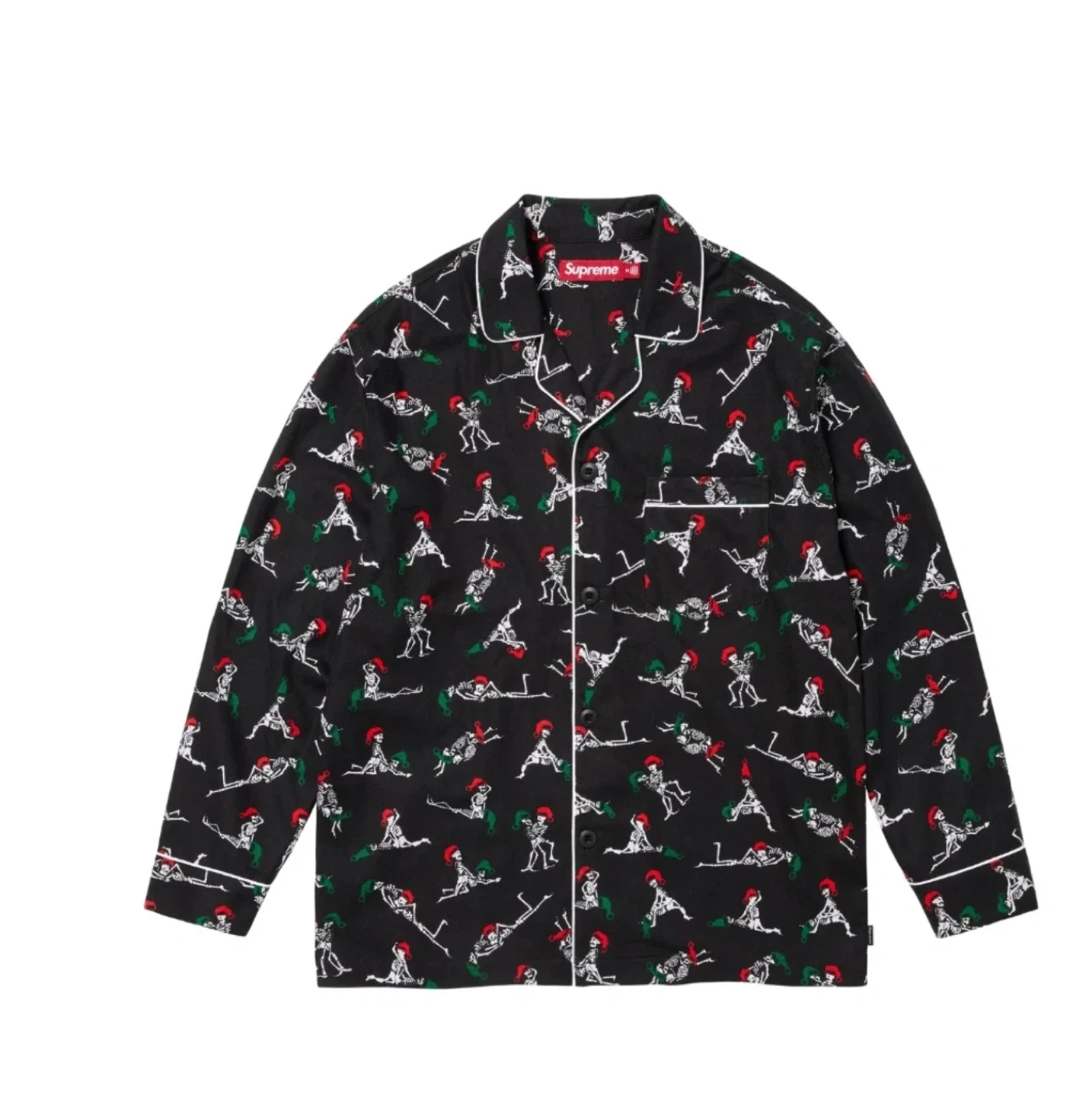 Buy & SellSupreme Skeleton Print Pajama TopSupreme Skeleton Print Pajama Top$52Supreme 100% cotton pajama top with a fun skeleton print. Features white piping details. Made in Cambodia. Size XL.ConditionNewSizeXLBrandSupremeWHERE TO MEET211 W 28th StView MapSELLERverifiedVasiliChelsea690 reviews0 chats·2 favorites·17 viewsSEND CHAT TO SELLERHi Vasili! I’m interested in your listing.Hi Vasili! I’m interested in your listing.Get the Karrot app to chatSign In to chat