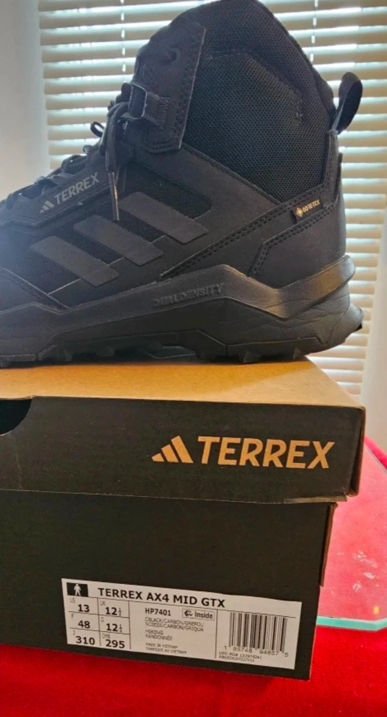 Selling a pair of Adidas Terrex AX4 Mid GTX hiking boots in size 13. They are in great condition and come with the original box. These boots are perfect for hiking and outdoor activities! Only Cash.