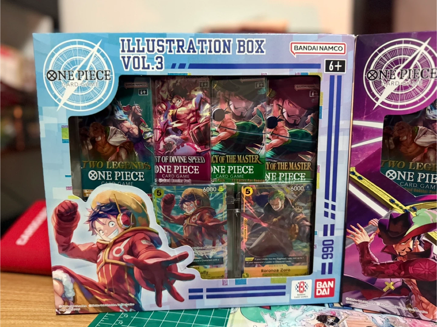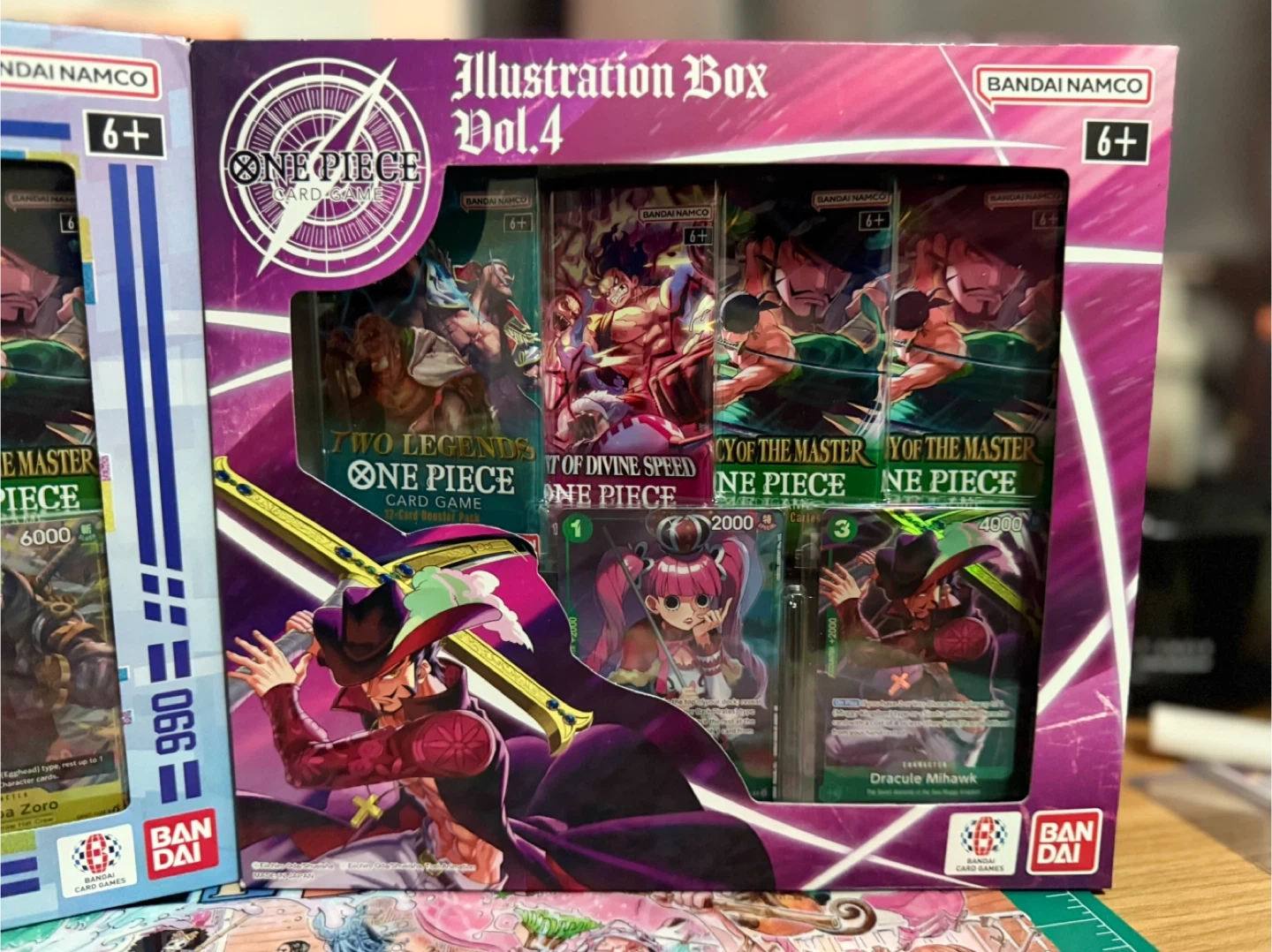 This is the One Piece Card Game Illustration Box Vol. 4. It contains booster packs for the One Piece Card Game. Recommended for ages 6