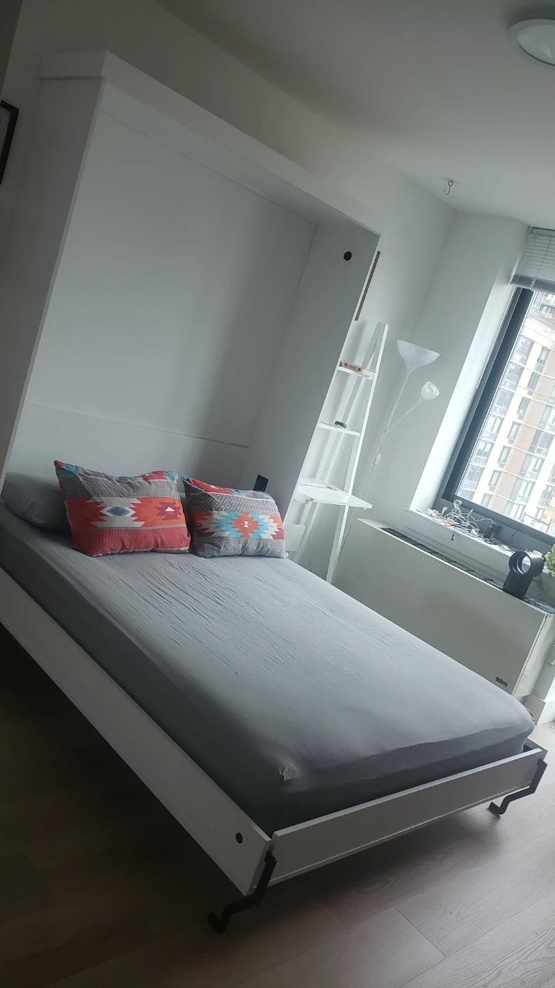 Wooden White Wall (Murphy) Bed with Queen Mattress
