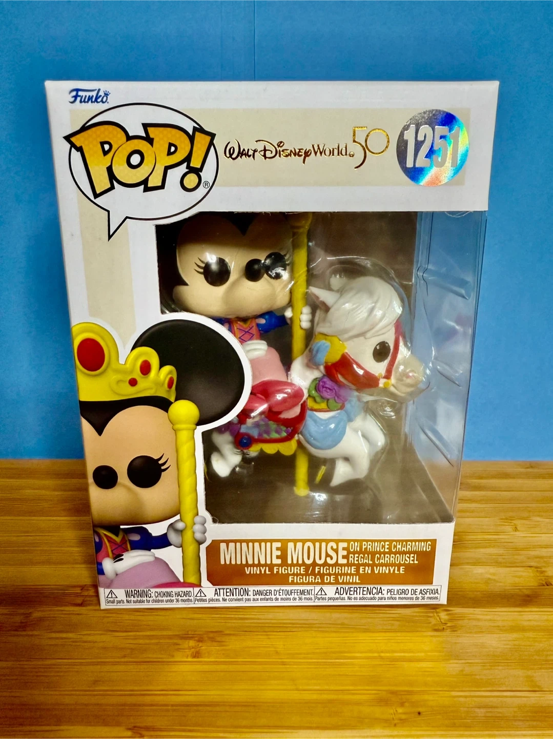 Selling a Funko Pop! figure of Minnie Mouse on Prince Charming Regal Carrousel, number 1251. This is a Walt Disney World 50th Anniversary edition. The figure is in its original box