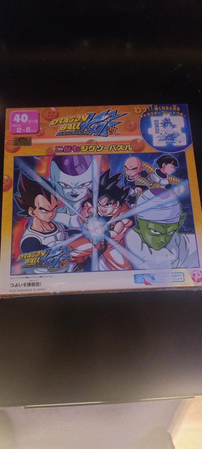 This is a 40-piece "Kosei Kisekae" jigsaw puzzle featuring Dragon Ball Z characters. It's designed for young children and includes a character plate. Made in Japan.