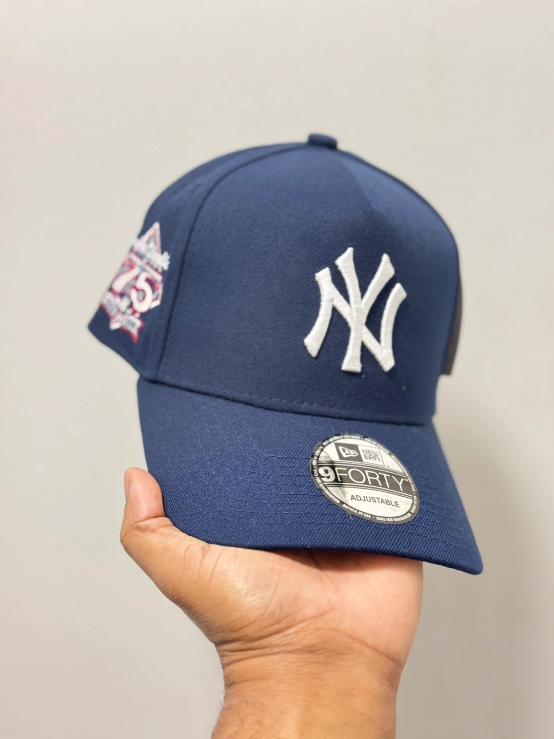 Navy blue New Era 9Forty baseball cap. Features the iconic New York Yankees 'NY' logo embroidered on the front. It's an adjustable hat for a comfortable fit. Great for any Yankees fan!
