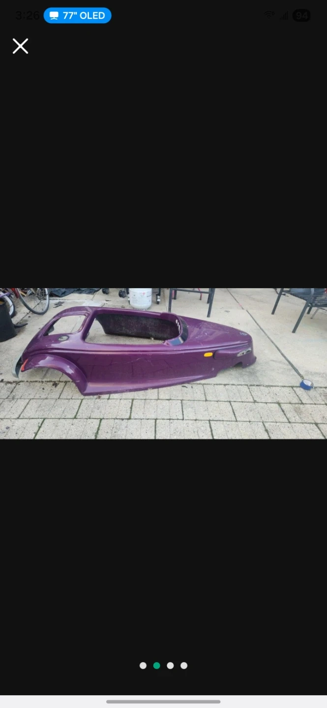 This is a purple Plymouth Prowler body shell. It's a unique purple color. This body shell is for automotive customization or projects.