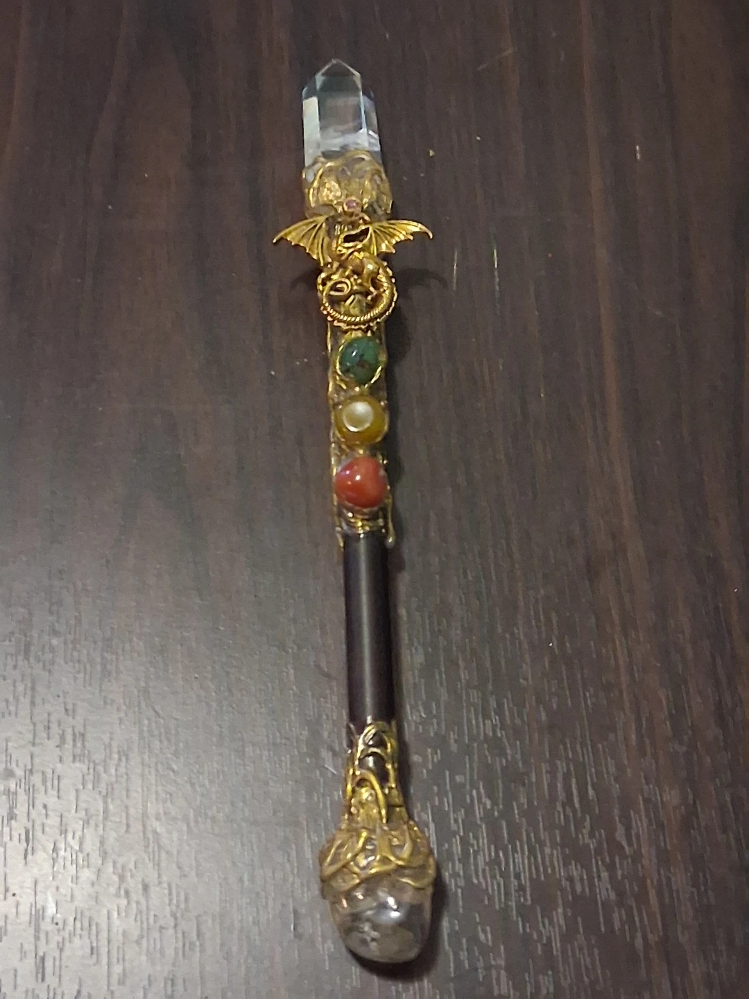 Crystal Dragon Wand with Gemstones 7 Inches Tall