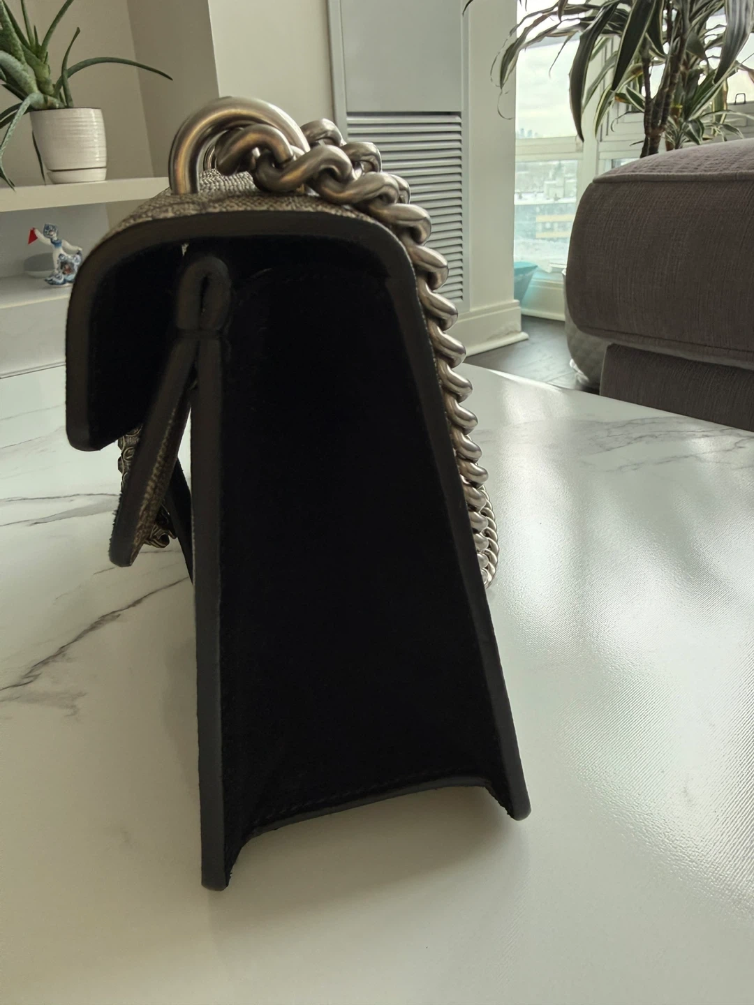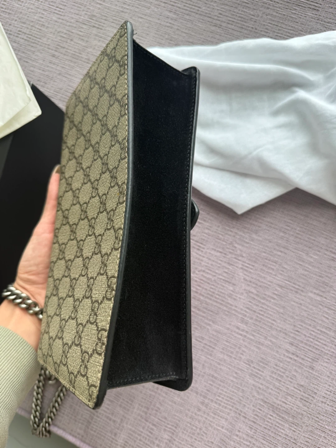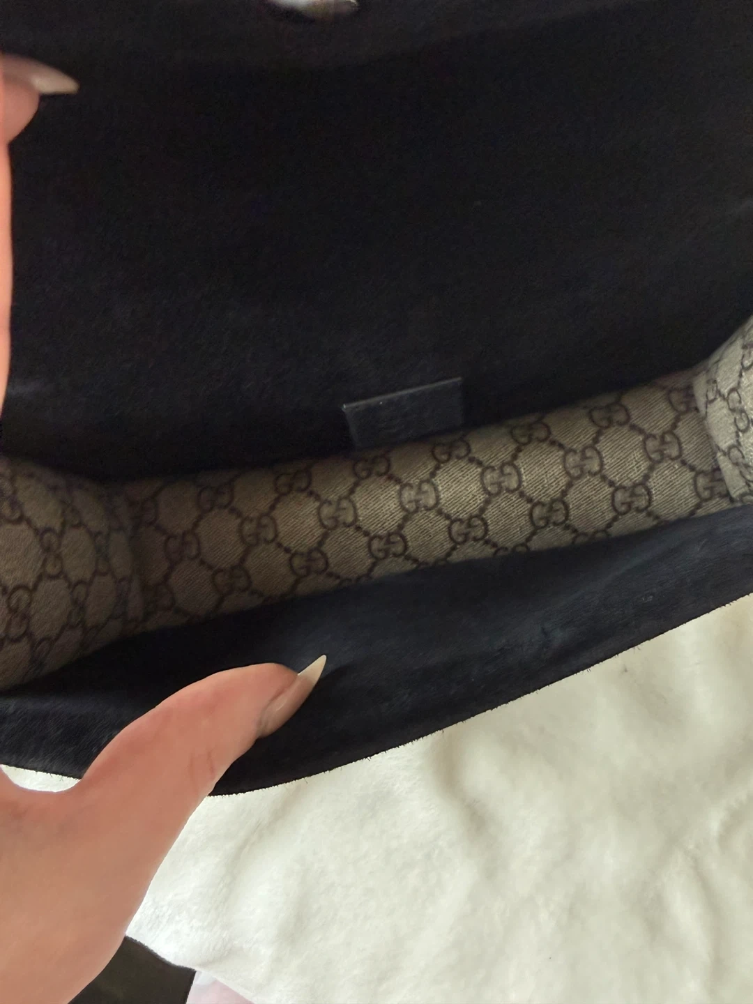 • ebony GG Supreme canvas lining, with black suede detail