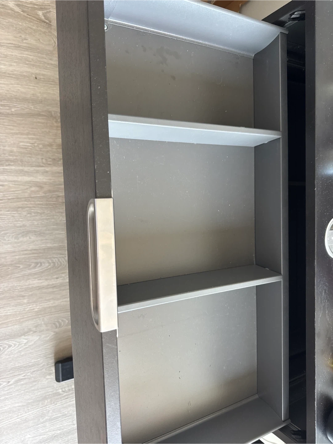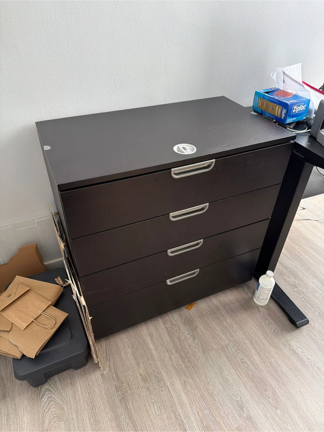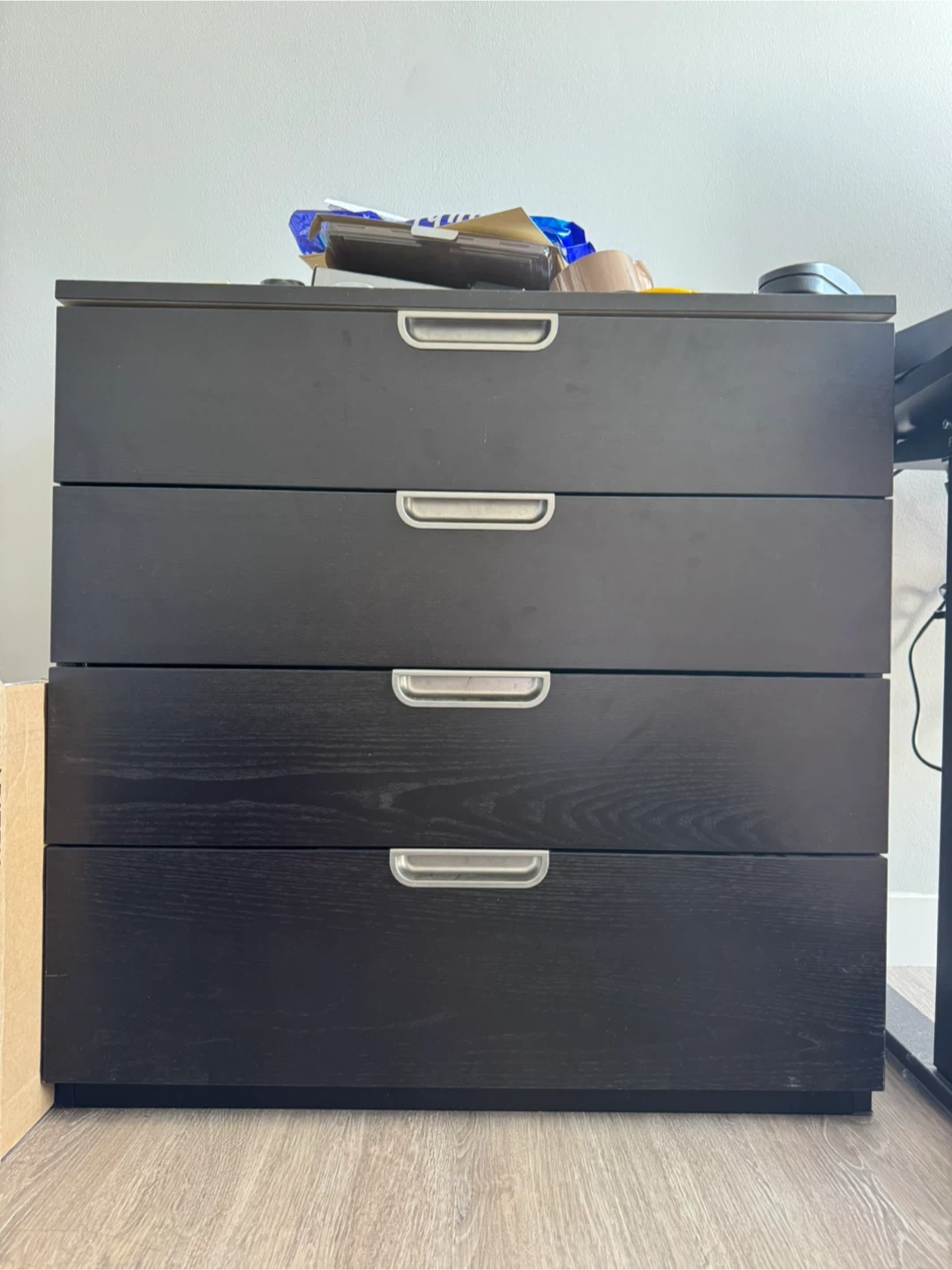 This is a lockable 4-drawer chest from IKEA. It's a great storage solution for any room. The drawers glide smoothly, offering easy access to your belongings.