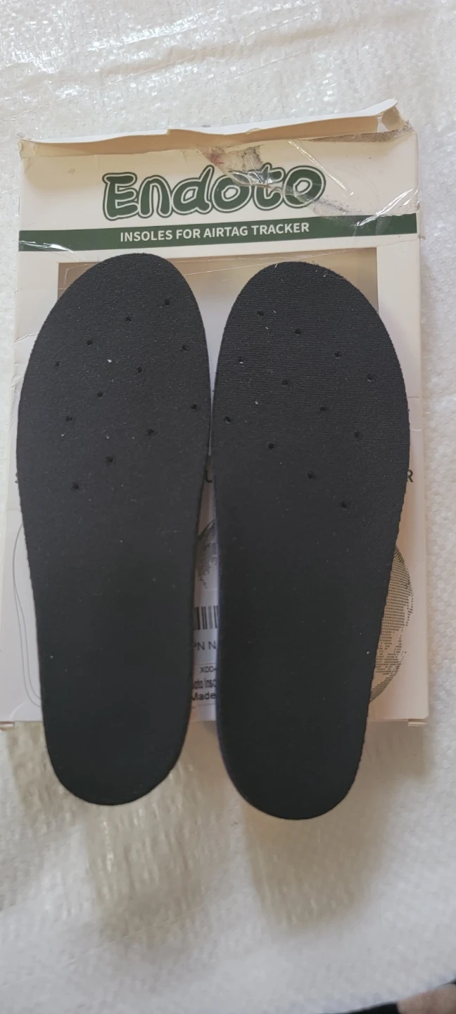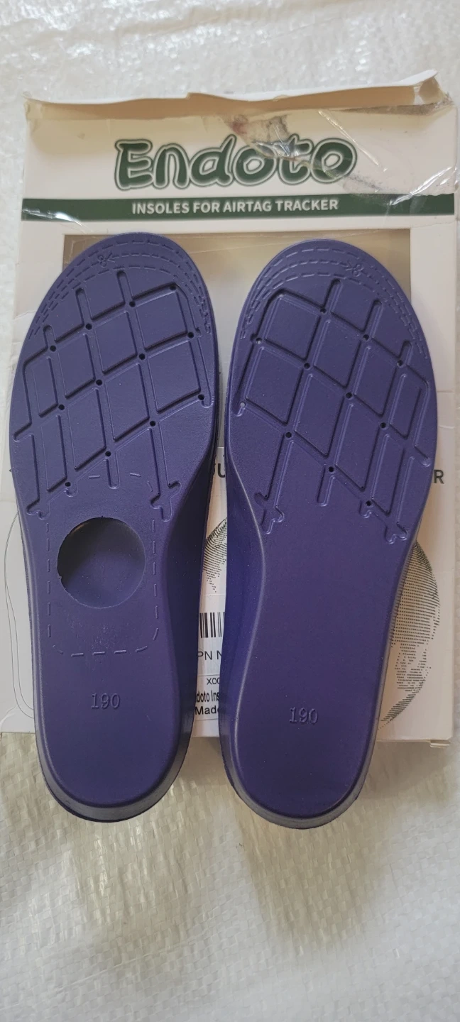Endoto shoe insoles designed for round location trackers. These insoles have a slight thickness and a groove for fitting a tracker. They're suitable for use with trackers to conceal them in shoes.