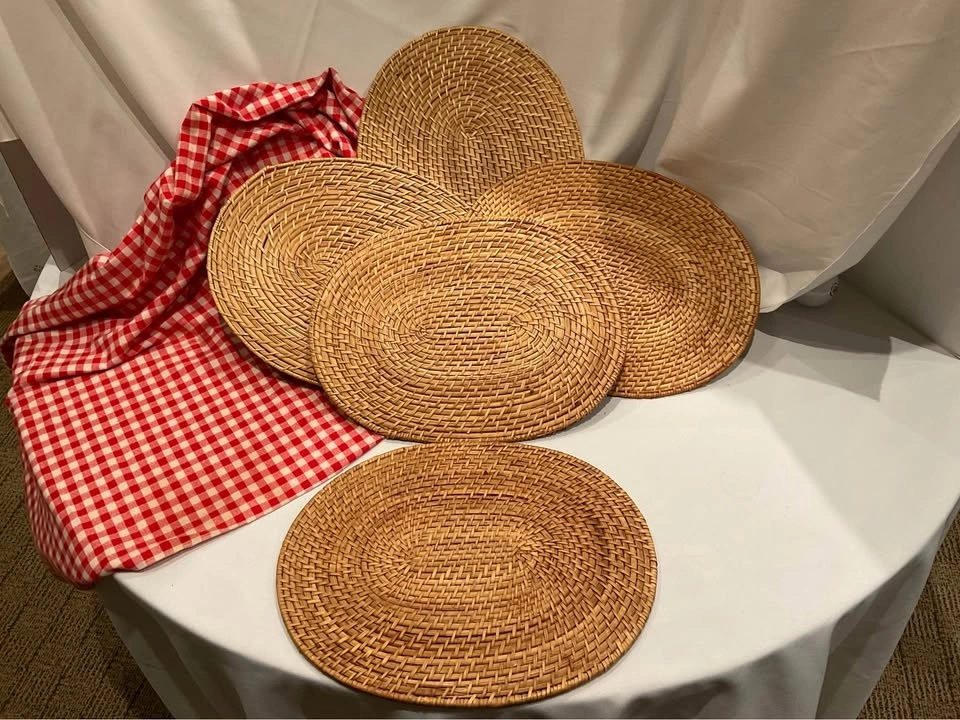 Vintage Natural Rattan Woven Set of 5 Placemats