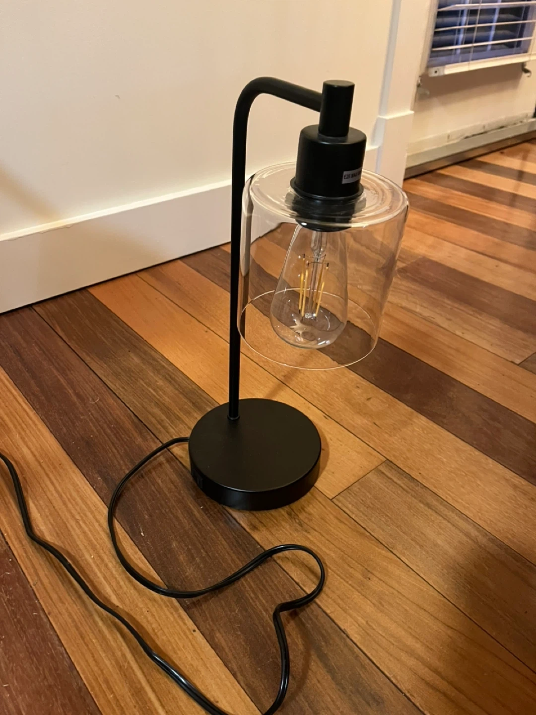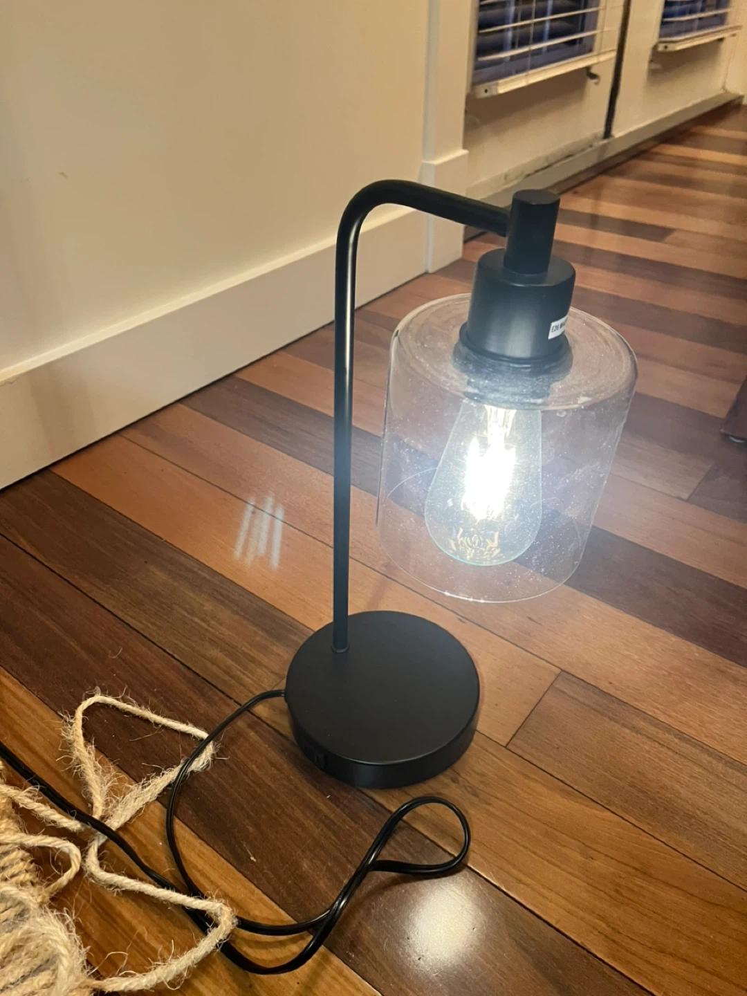 Black Metal Table Lamp with Glass Shade and USB Ports