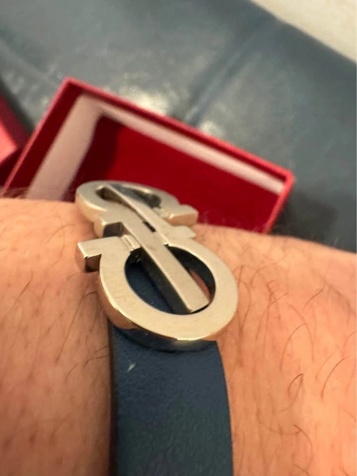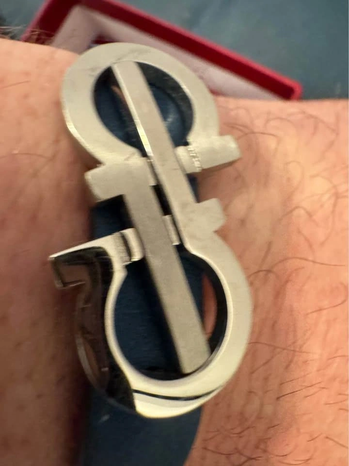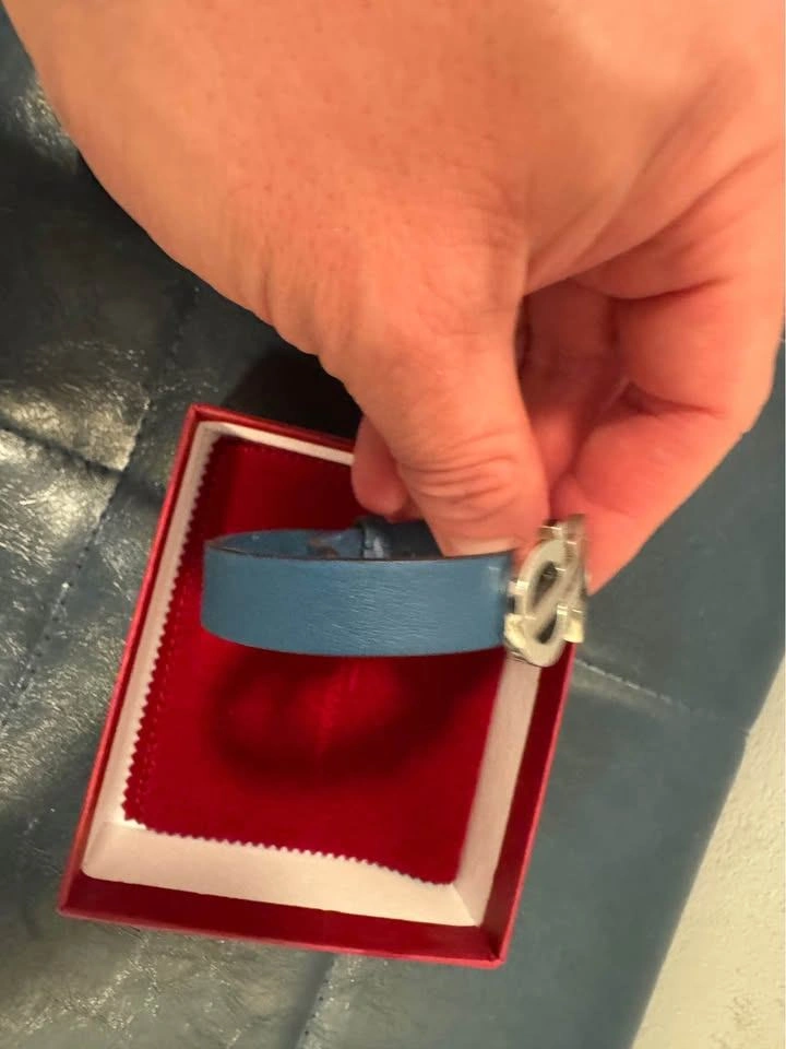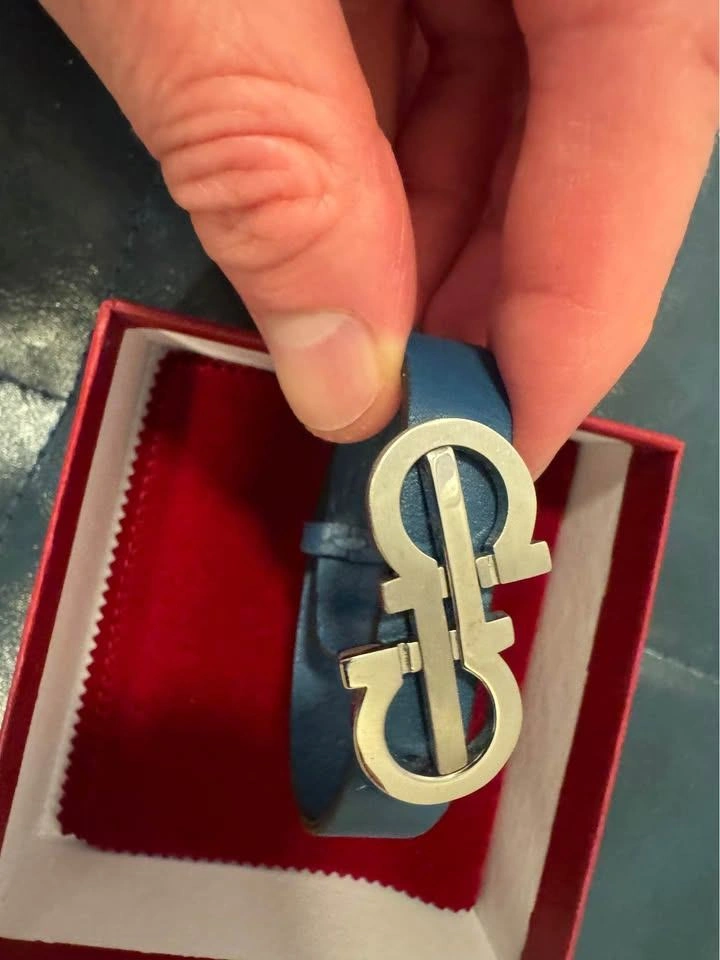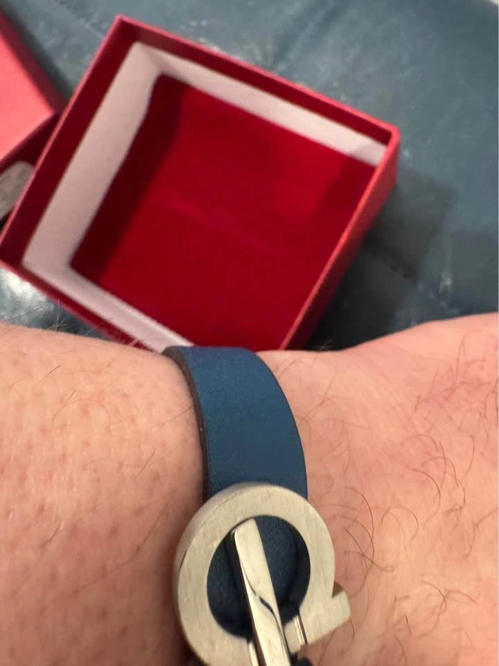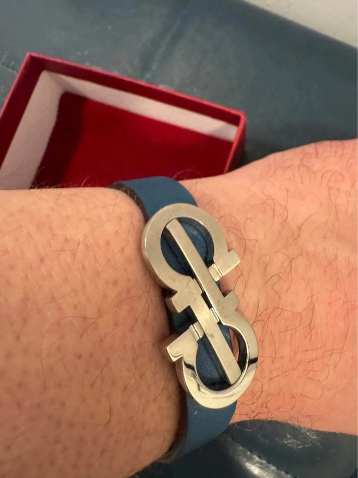 Salvatore Ferragamo Leather Bracelet – Blue with Silver Gancini Logo – $150 OBO