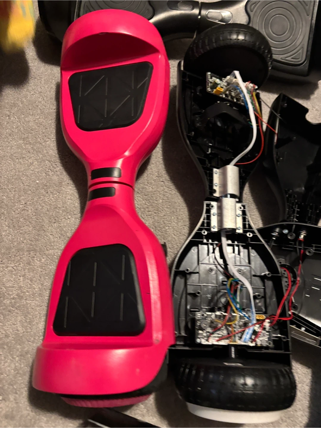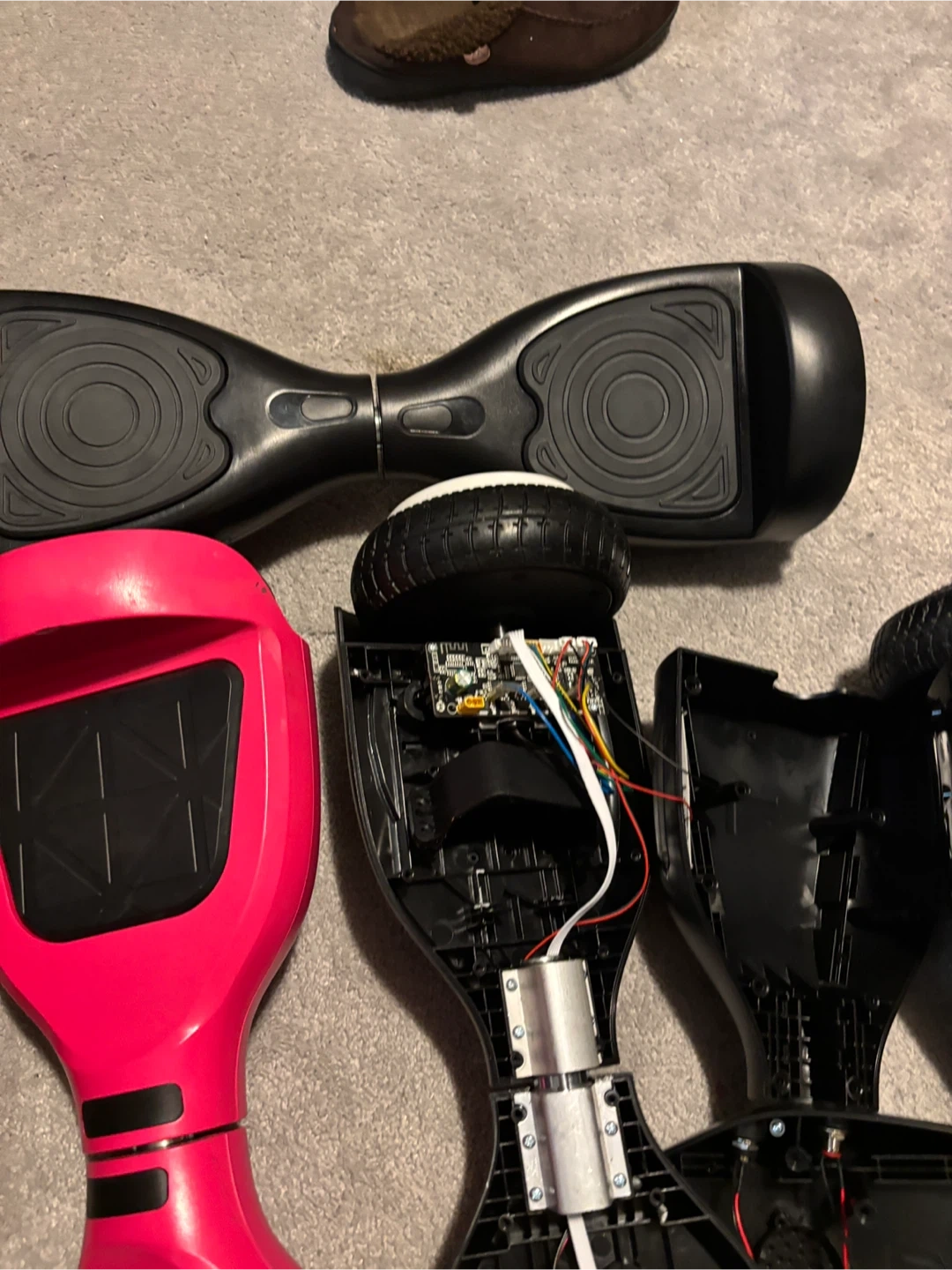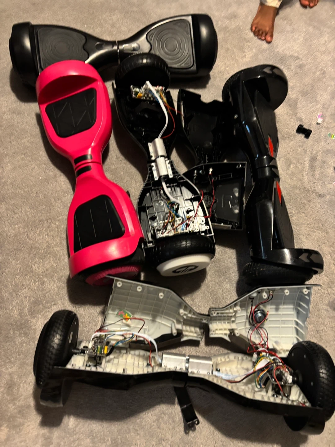 This listing includes multiple hoverboards, some disassembled for parts or repair. It's a good opportunity for those needing specific components or looking to fix their own units. Different colours like pink and black are visible.