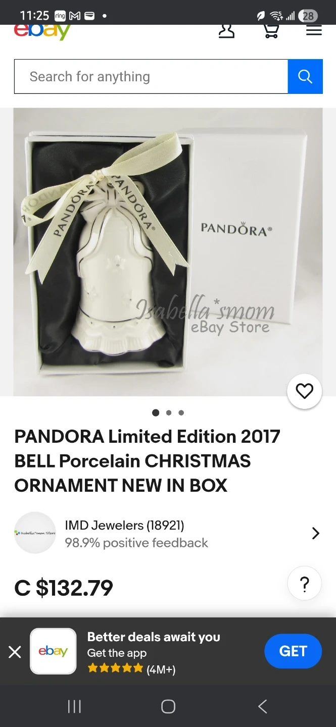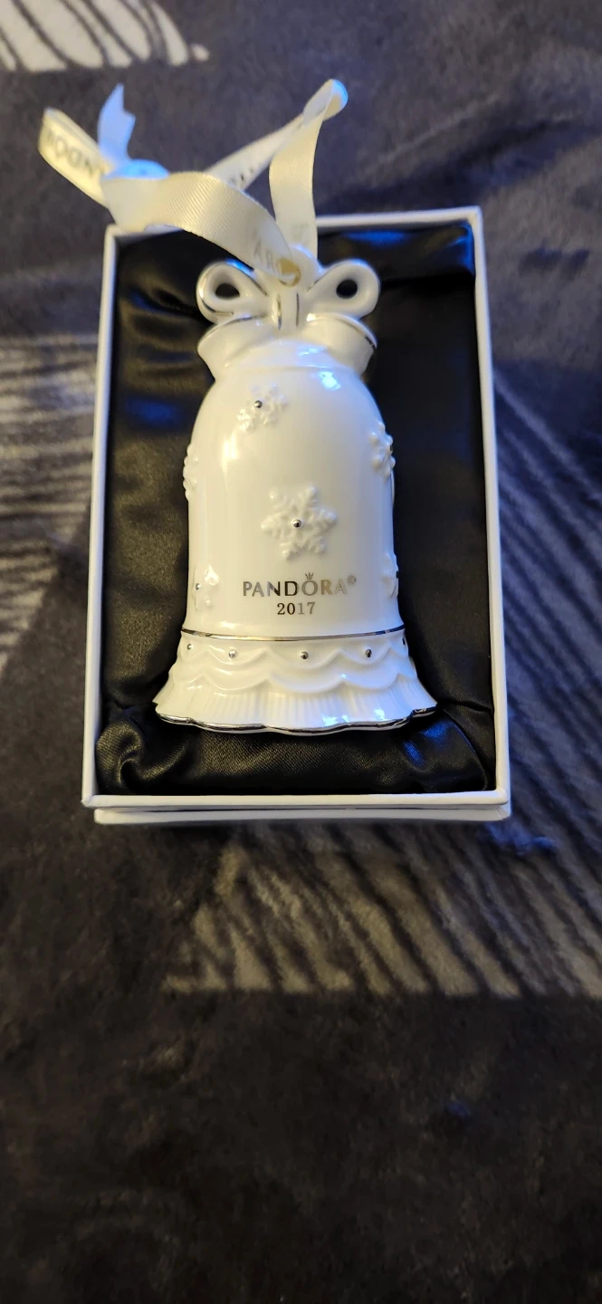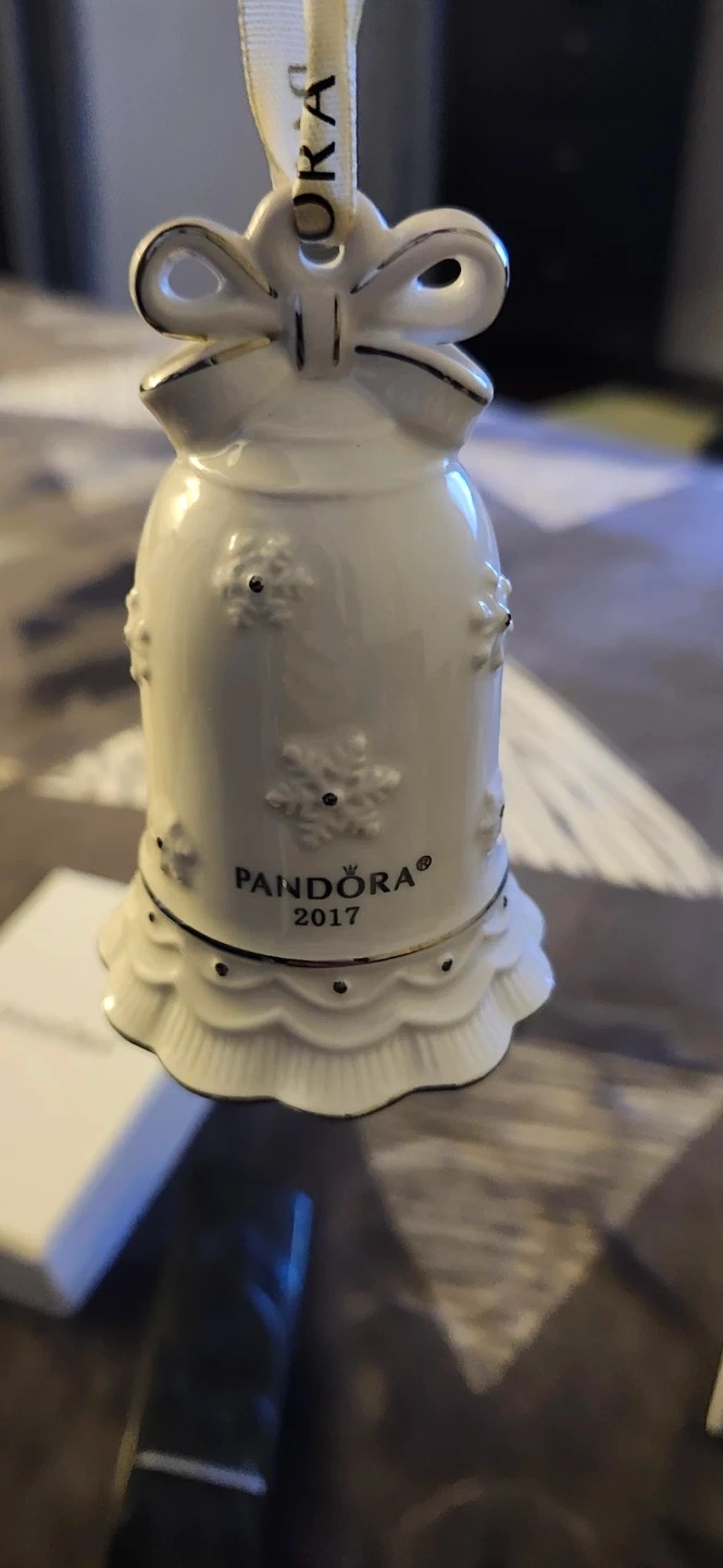 This is a Pandora Limited Edition 2017 Bell Christmas Ornament. It's made of porcelain and comes new in its original box. It's perfect for holiday decorations!