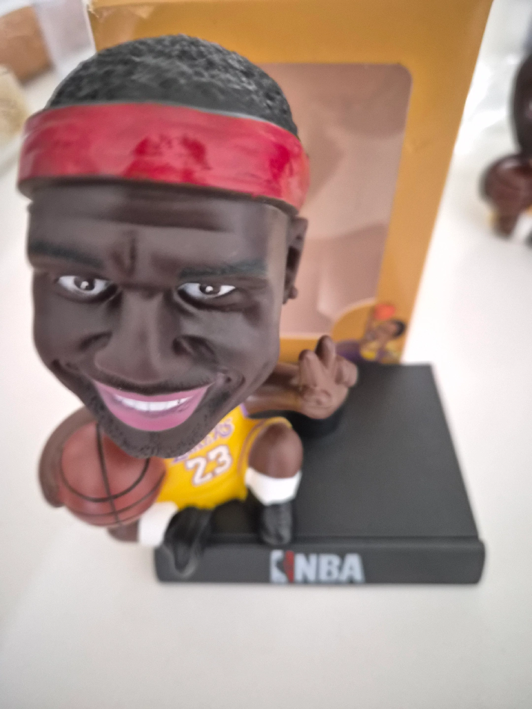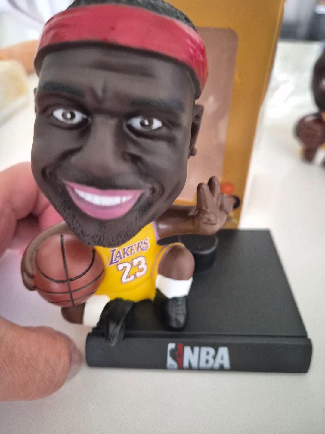 Selling a LeBron James bobblehead! It features him in his Lakers jersey with the number 23. The bobblehead is in great condition and comes with the original box. use for CAR display