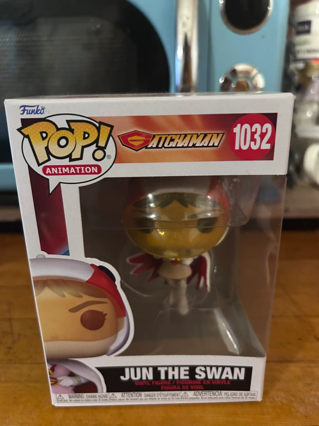This is a Funko Pop! Animation vinyl figure of Jun The Swan, number 1032. It's in its original packaging. This collectible figure represents a character from the Gatchaman series.