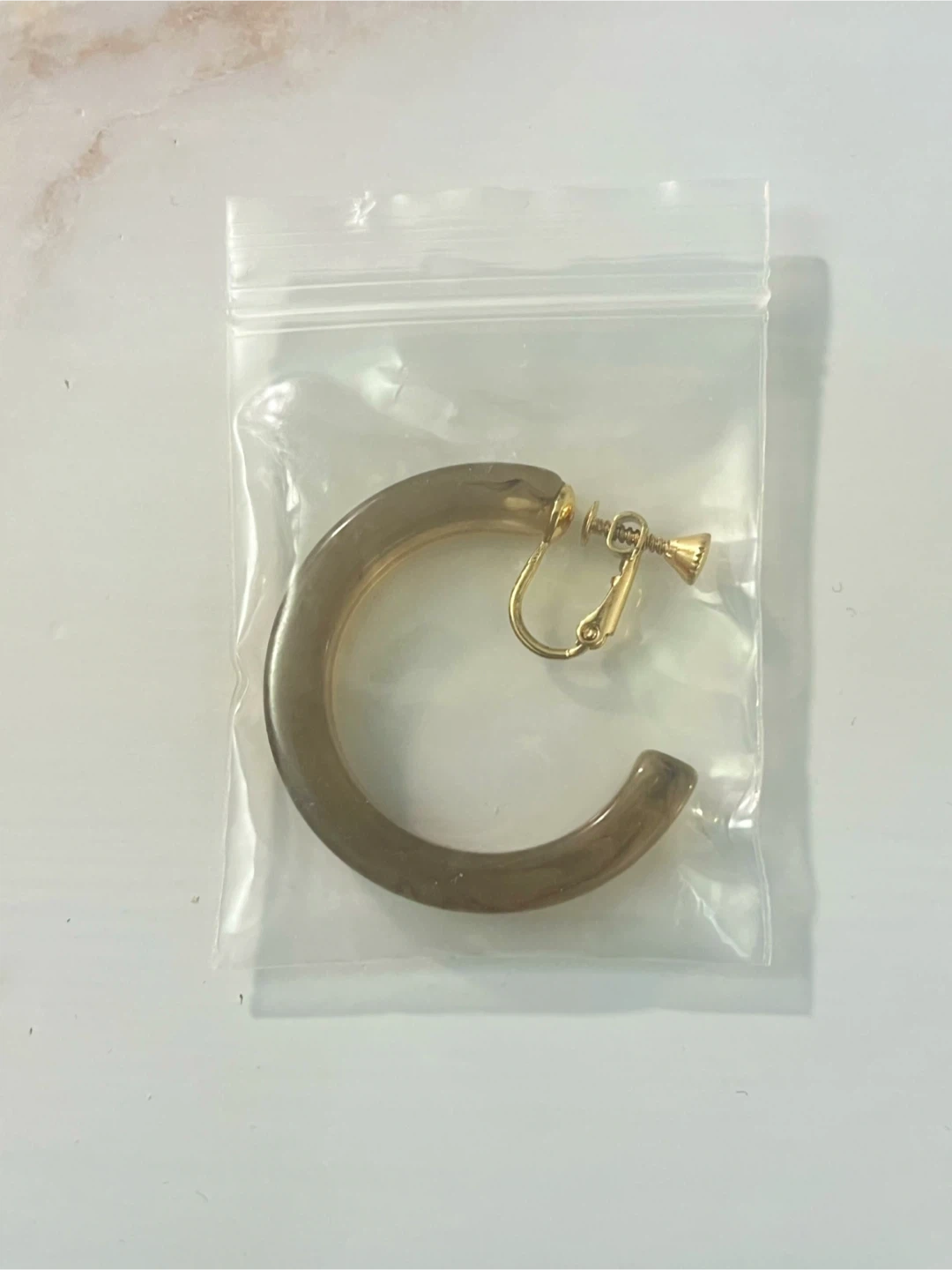 Selling a pair of hoop clip-on earrings in a brown colour. These earrings are in great condition and come in their original packaging