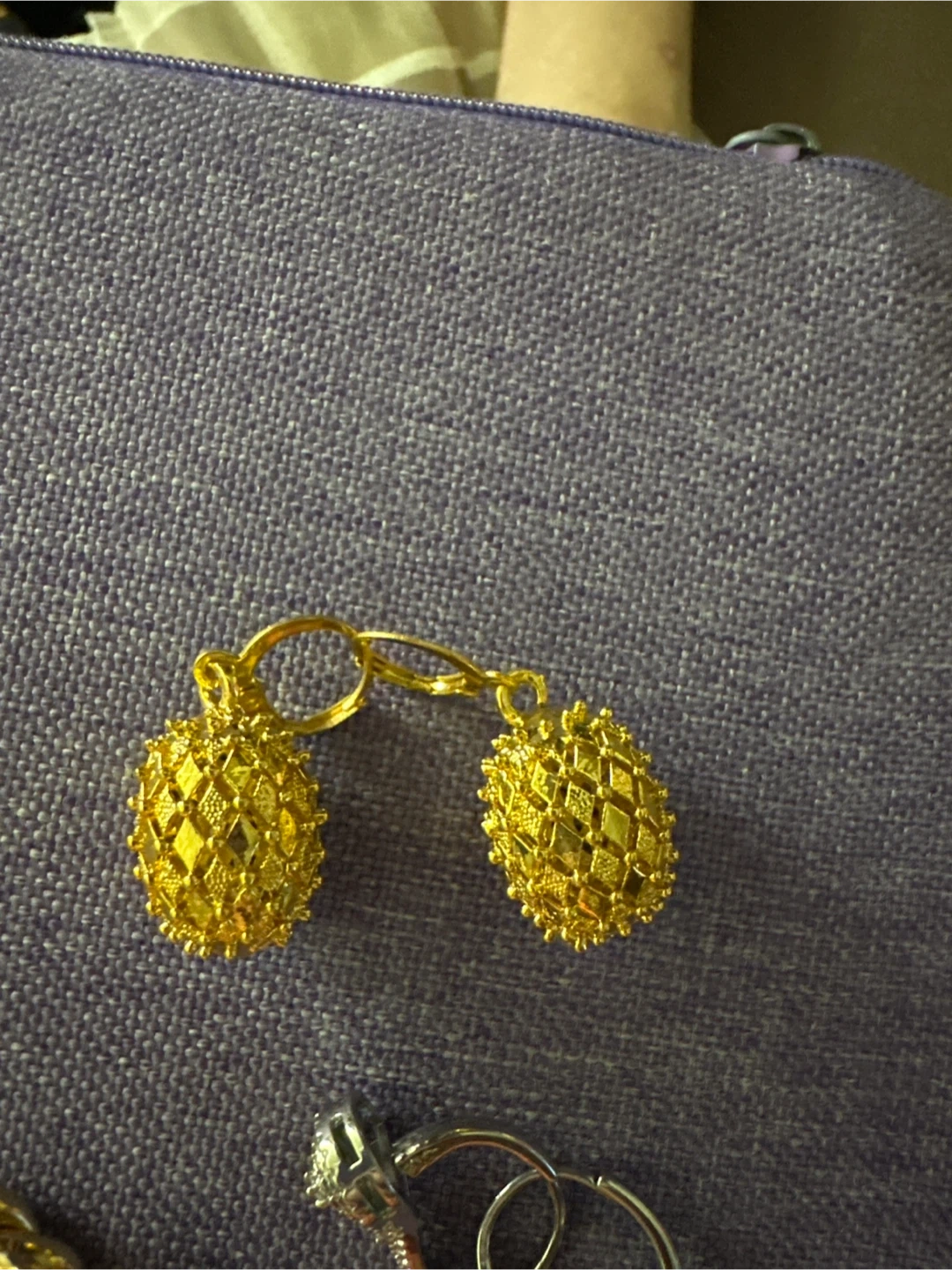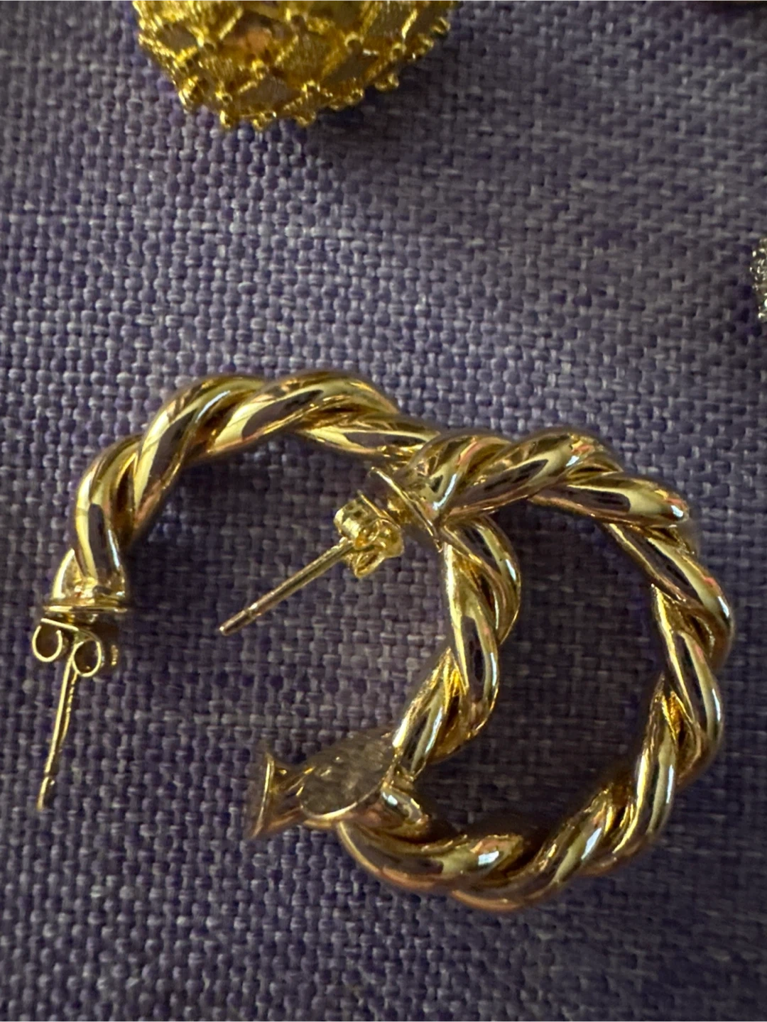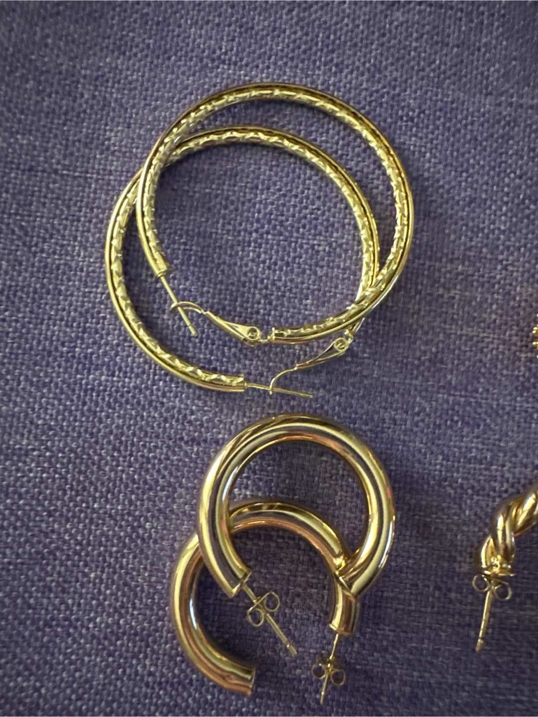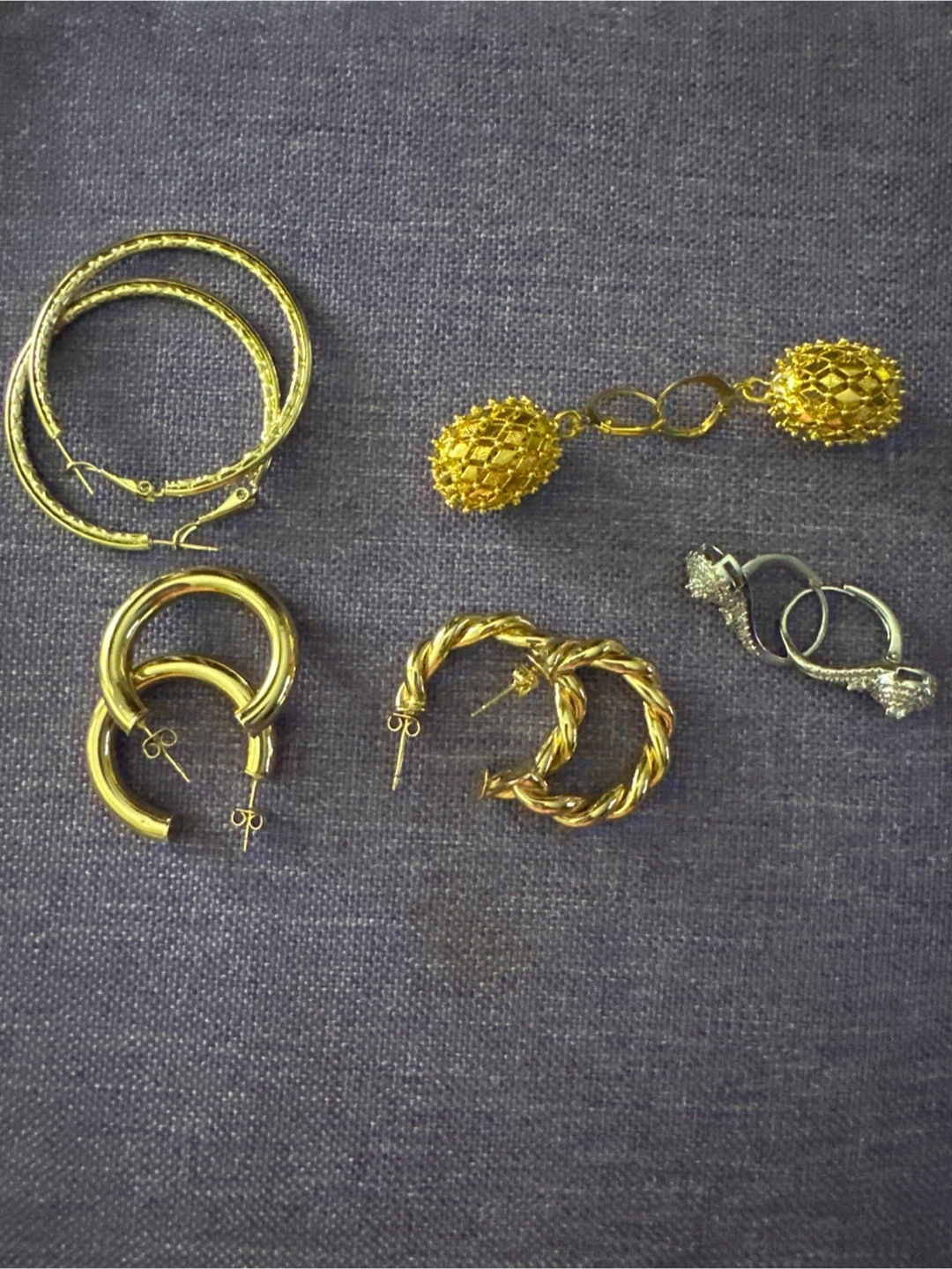 Various Xuping gold-tone hoop earrings and studs. Pieces are packaged individually with prices listed on them. A nice selection of styles.